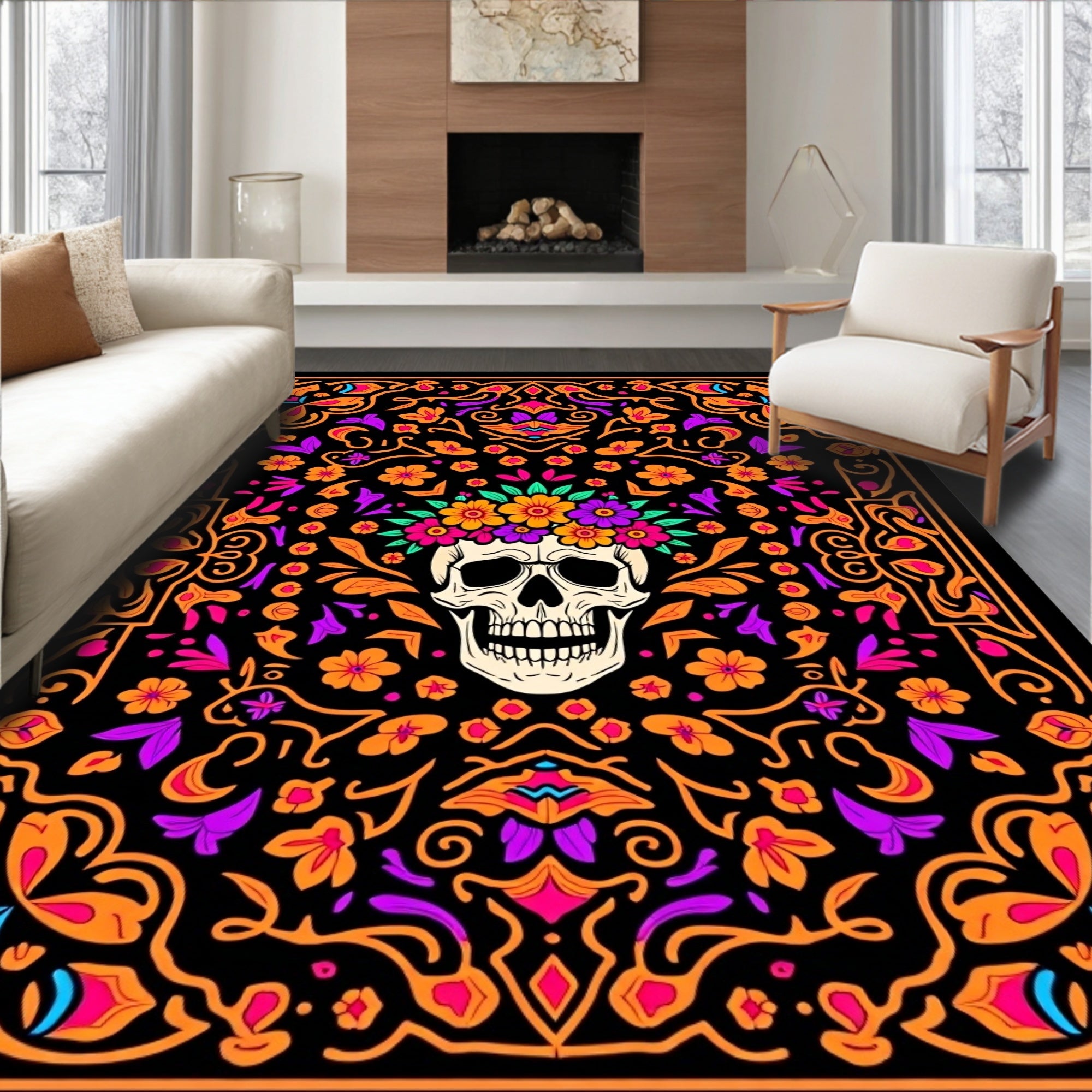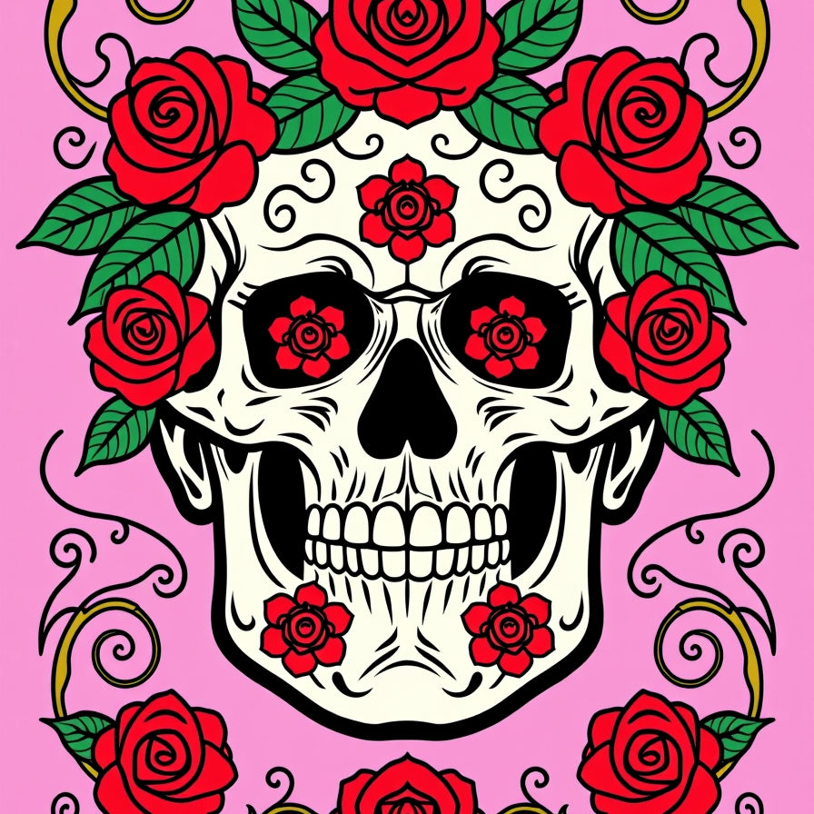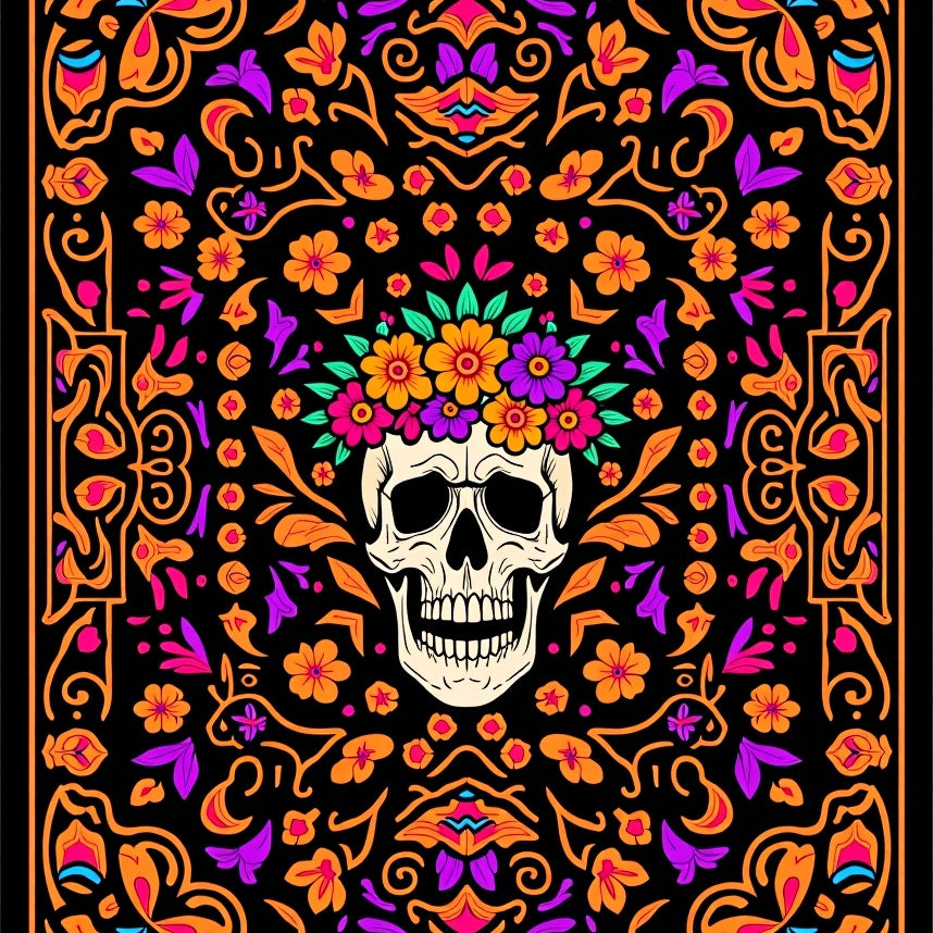 Ornate Sugar Skull Floral with Intricate Day of Dead Motifs(Black)