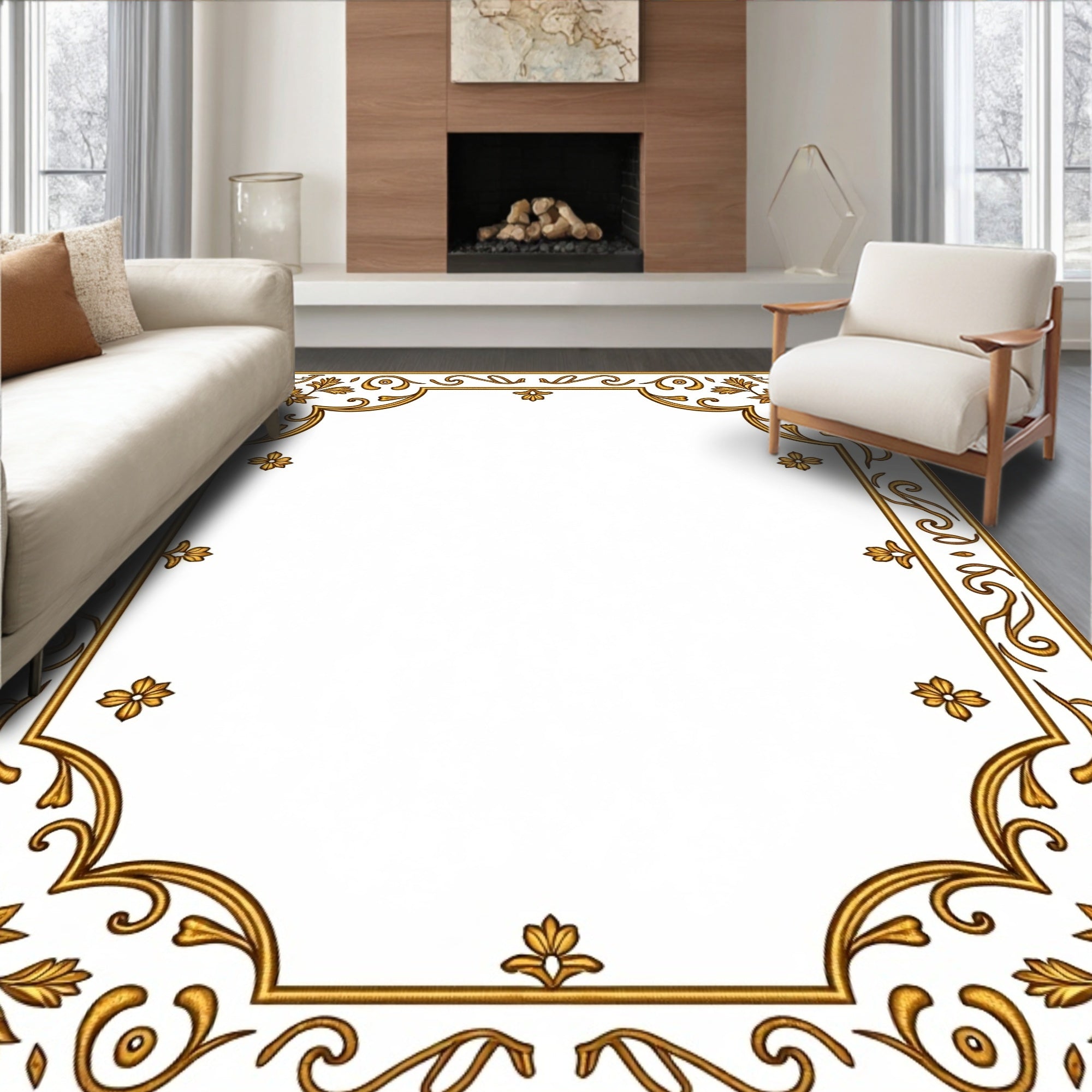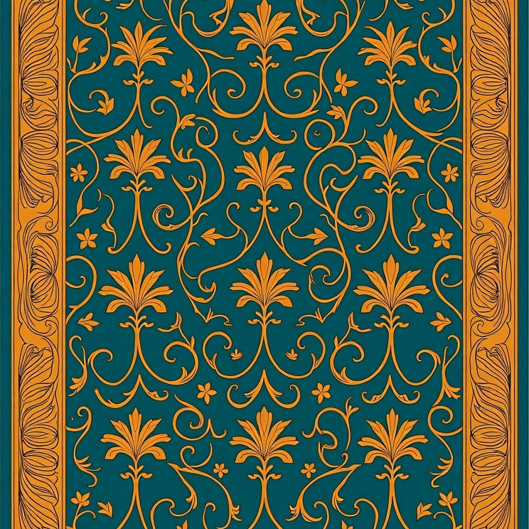 Tan with Ornate Floral Medallion Motifs and Curved Edges(Gold)