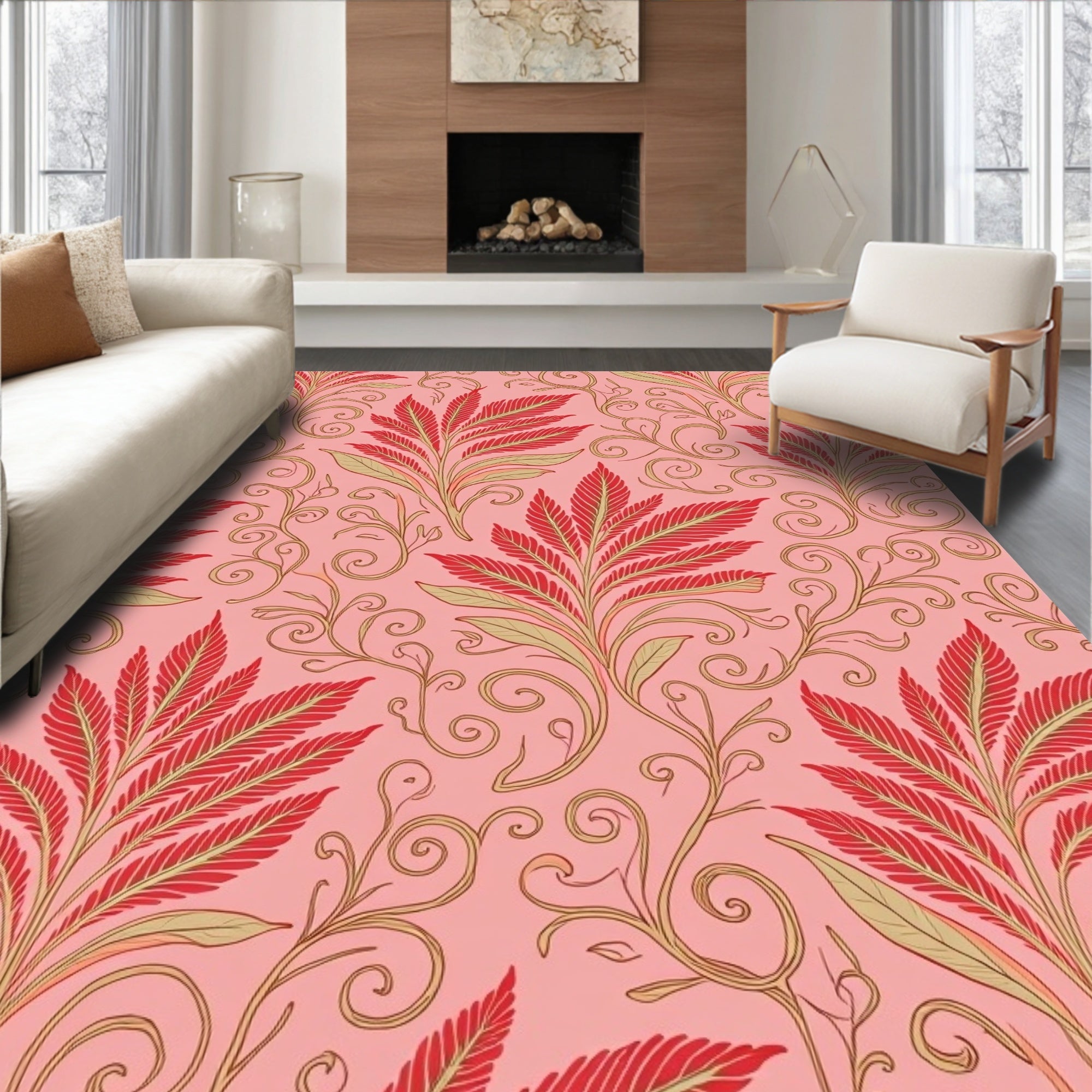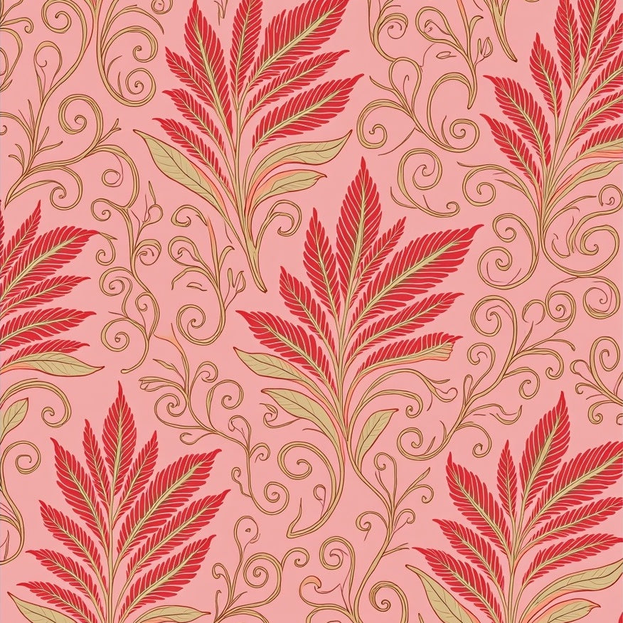 Art Nouveau Floral Cascade with Whimsical Leaf Swirls(Pink)
