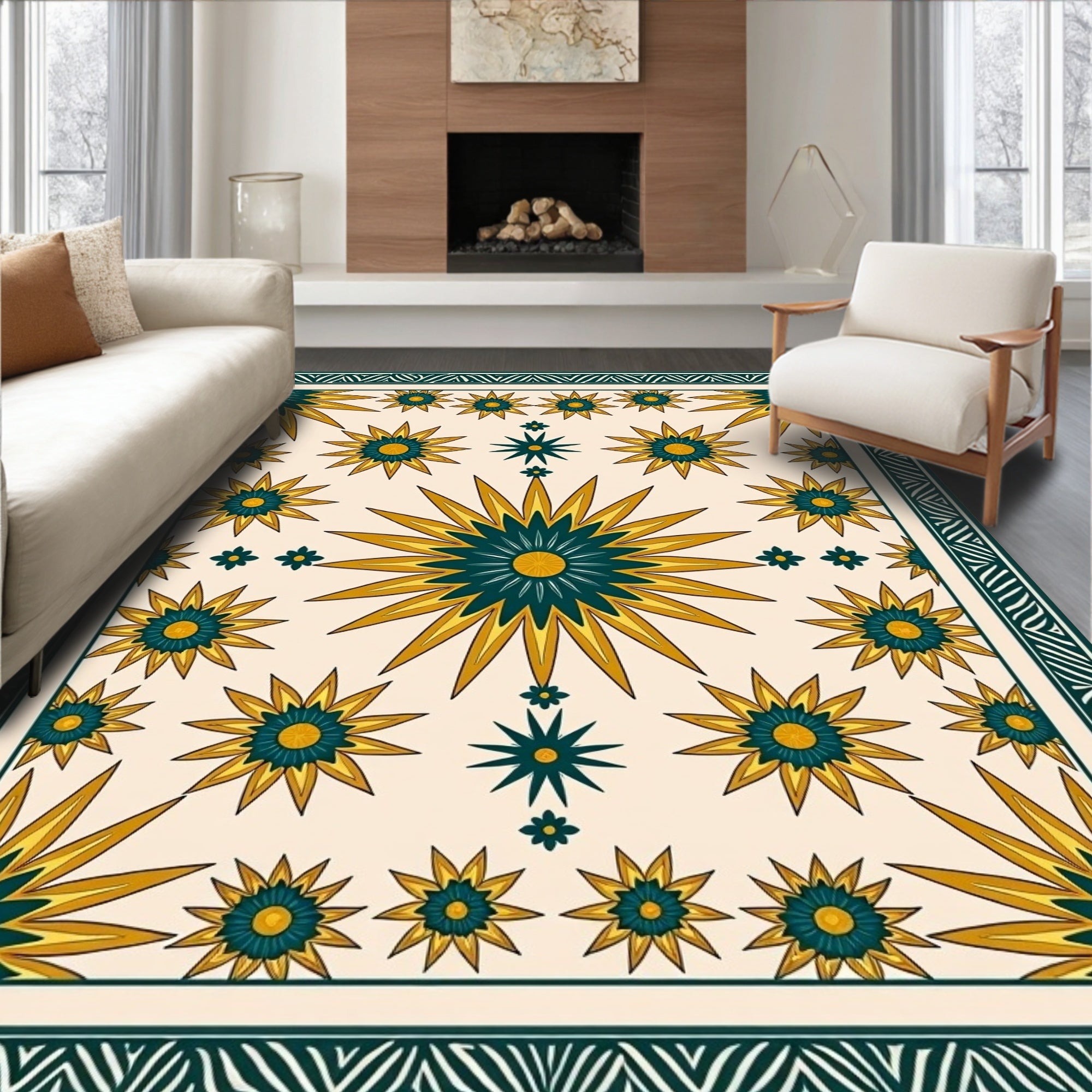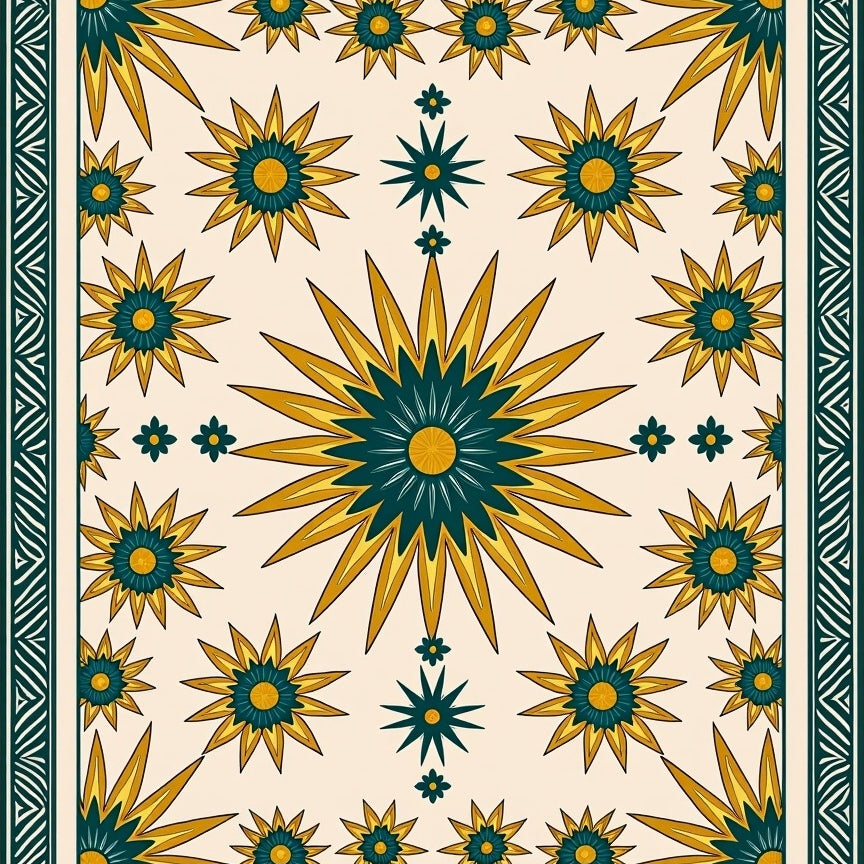 Boho Sunburst Mosaic with Ornate Floral Medallions(Beige)