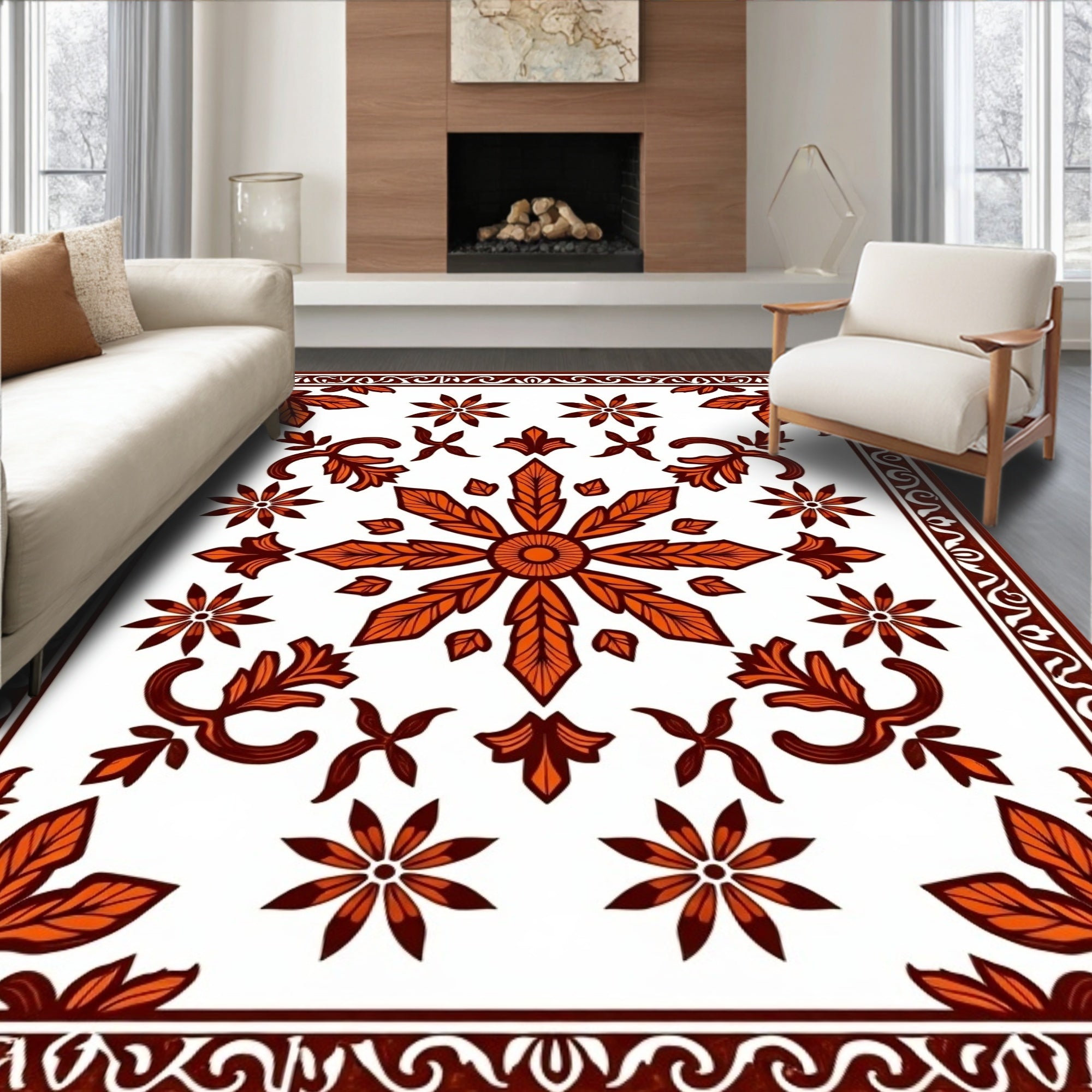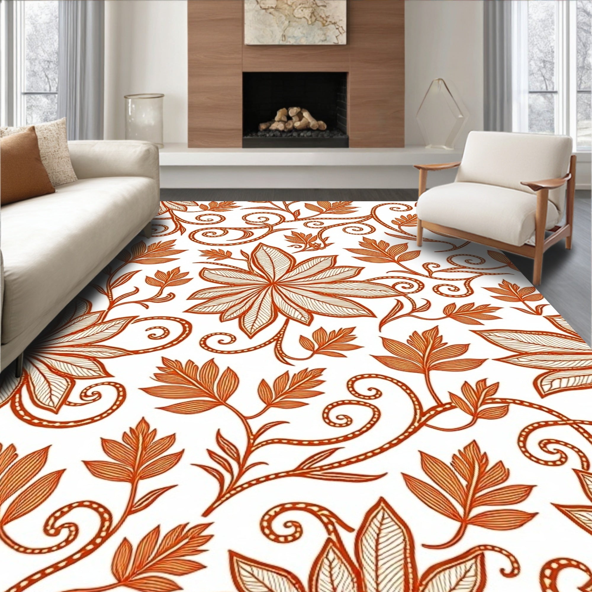 Vintage Floral Medallion with Ornate Autumn Leaf Motifs(Orange)