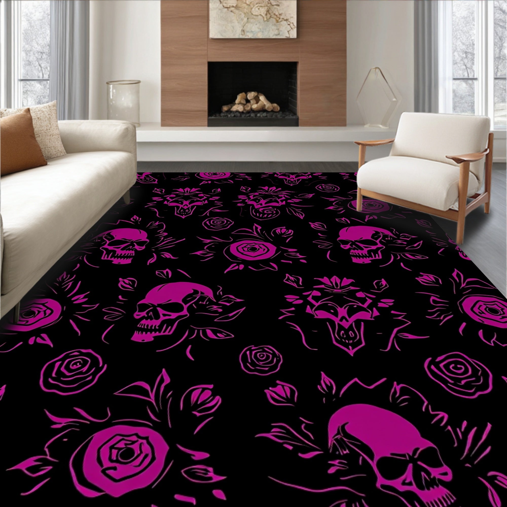 Macabre Rose Skull Tapestry Interlocking Floral Gothic Art(Black)