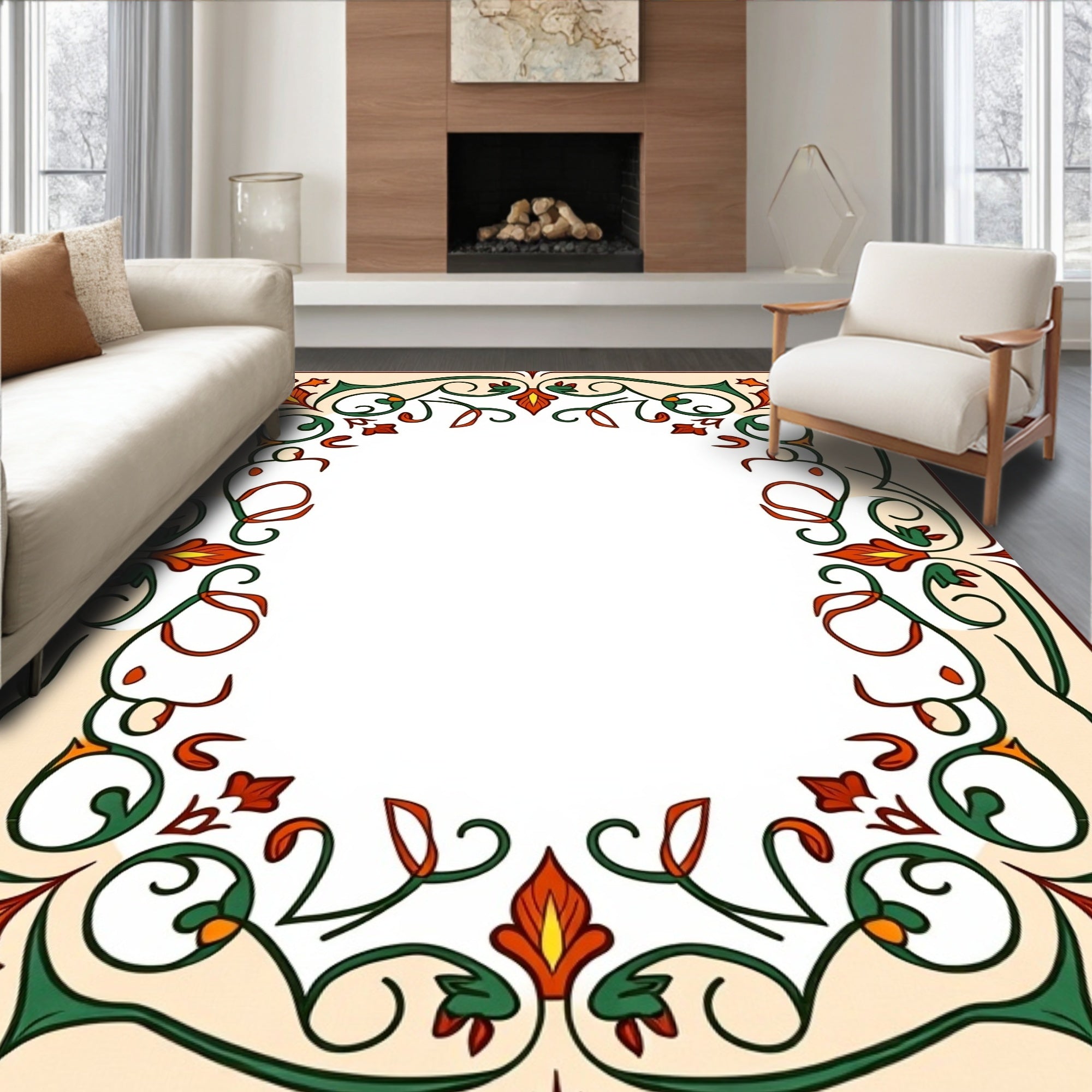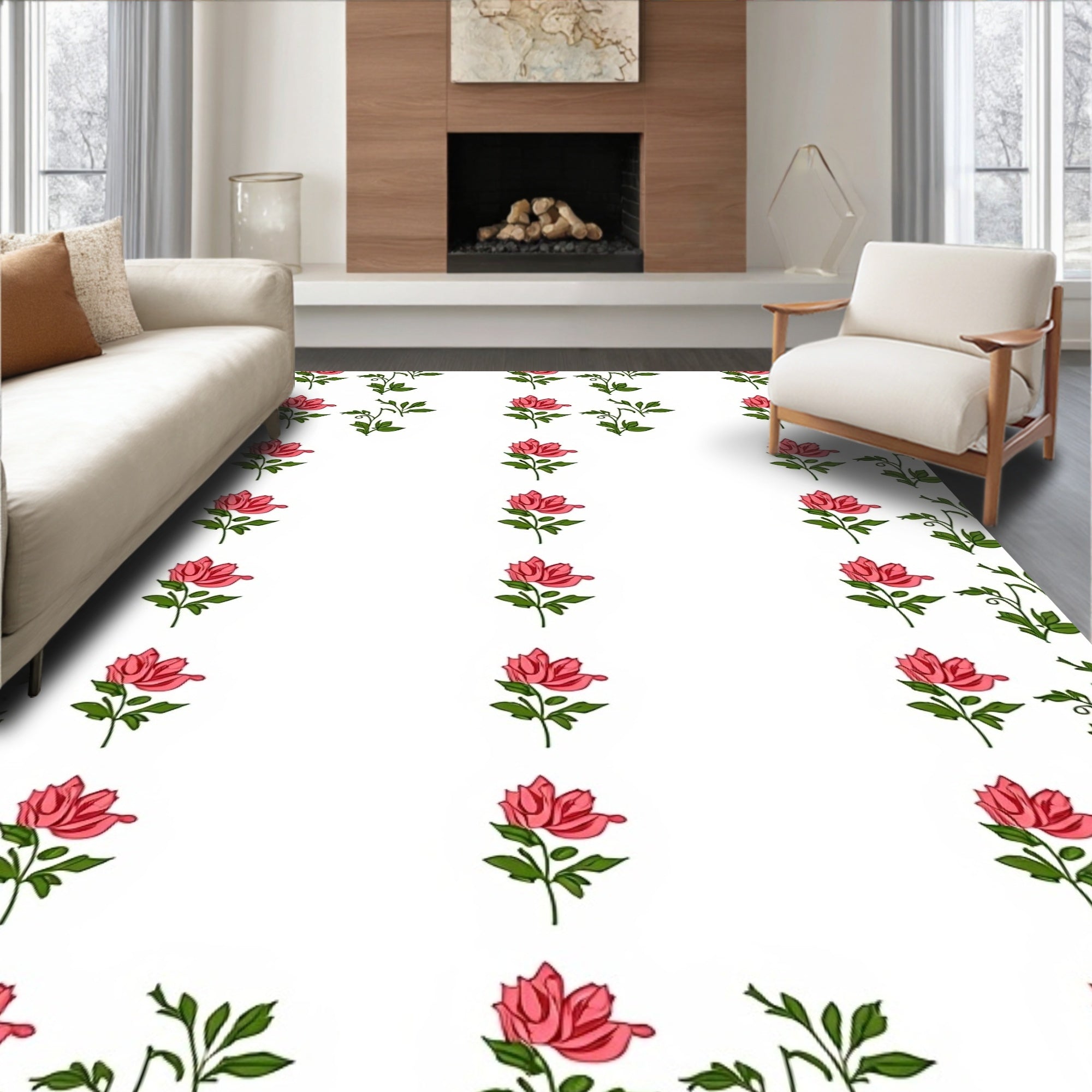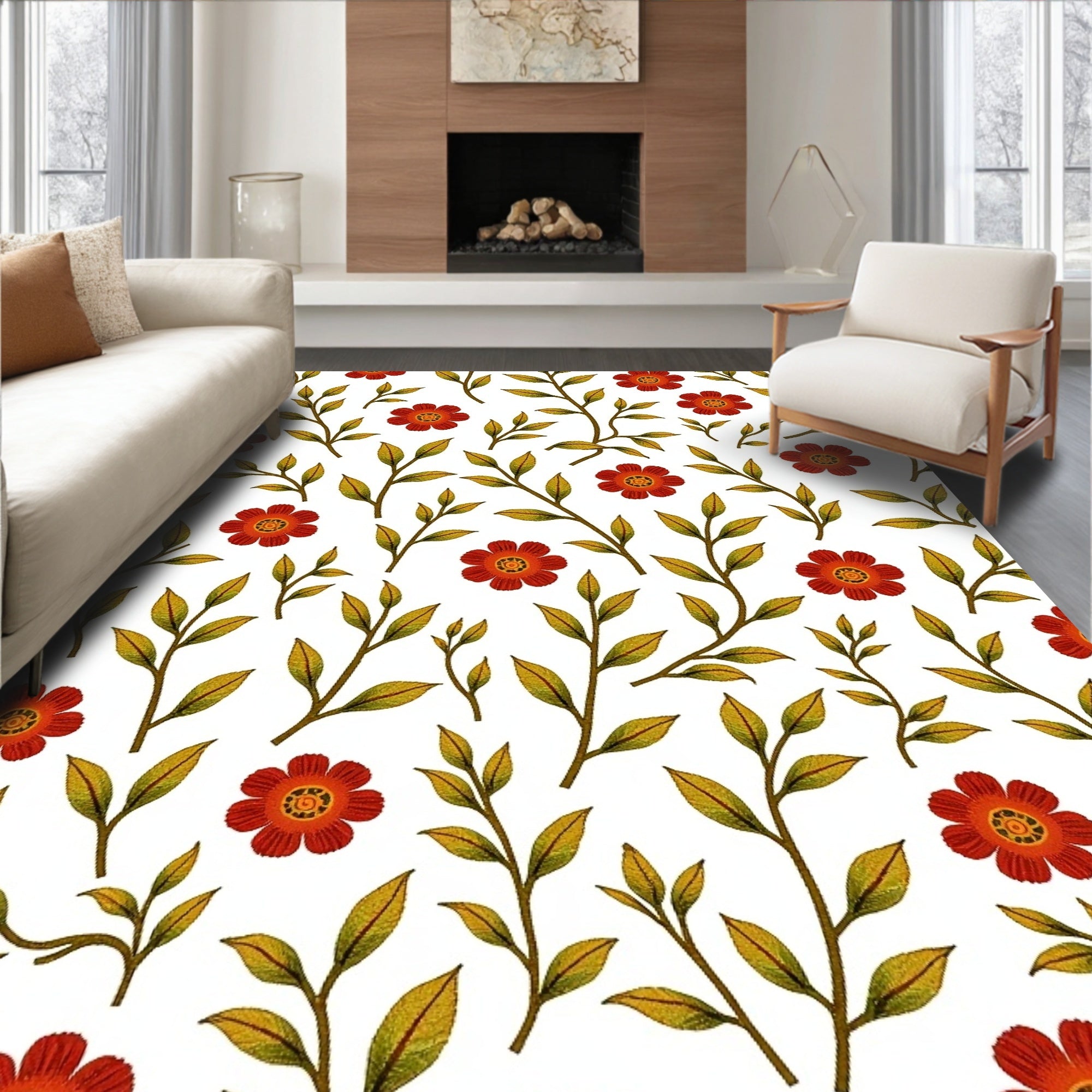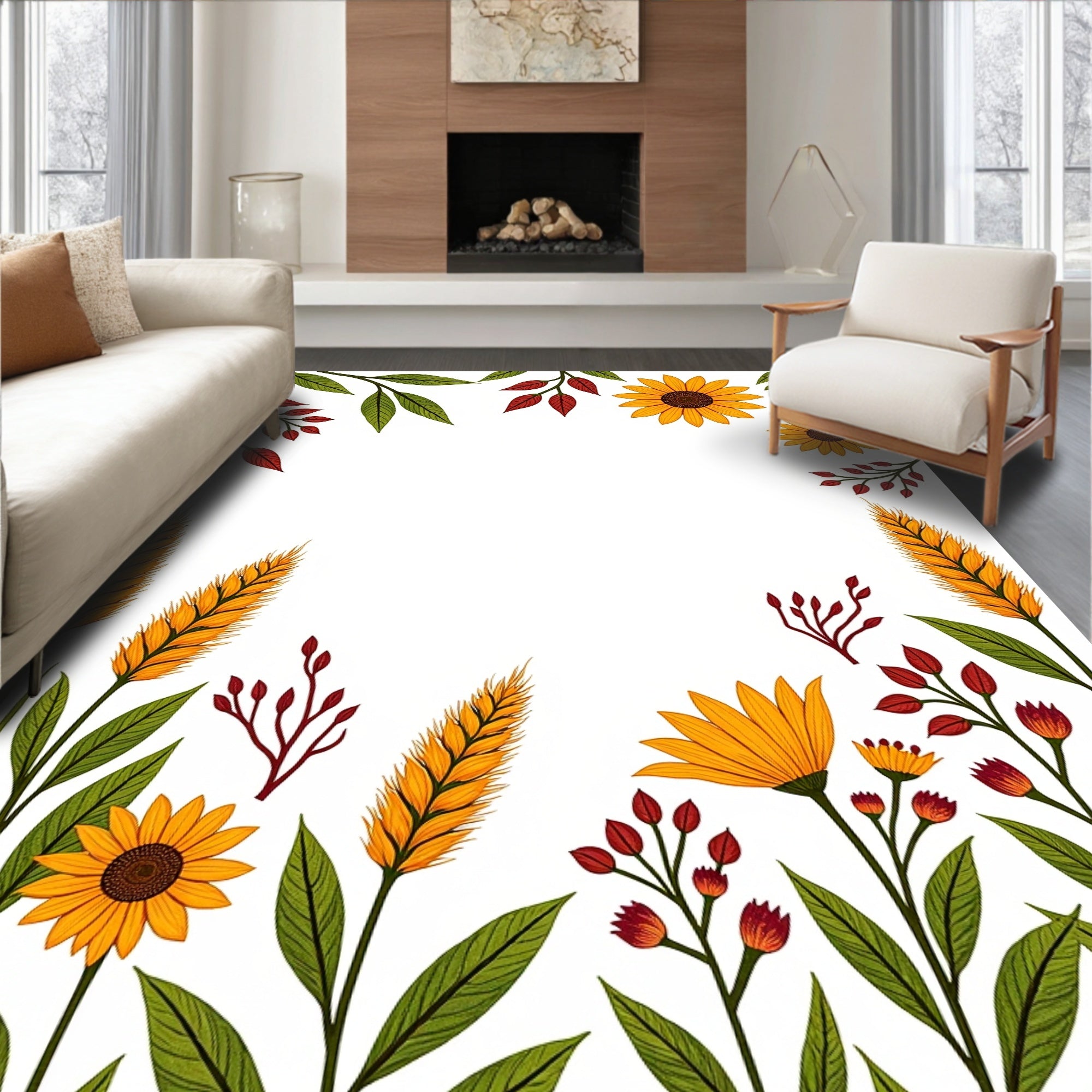 Natural Countryside Floral Sketch Elegant Entryway(White)