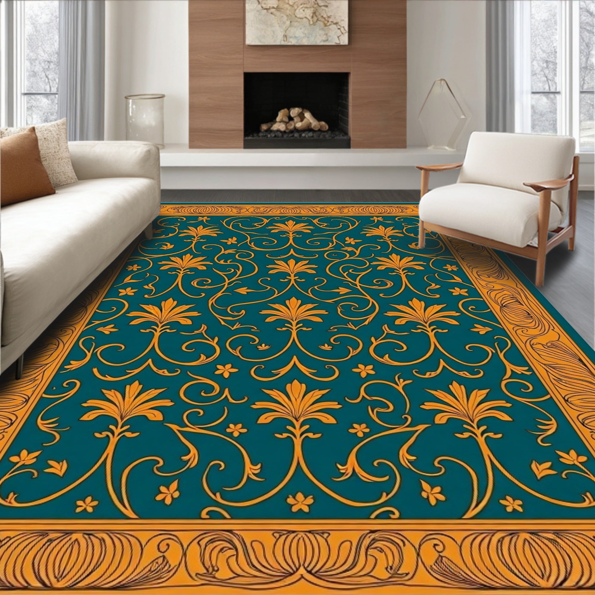 Artisan Floral Damask Vine Swirl Elegant Traditional Embellishment(Blue)