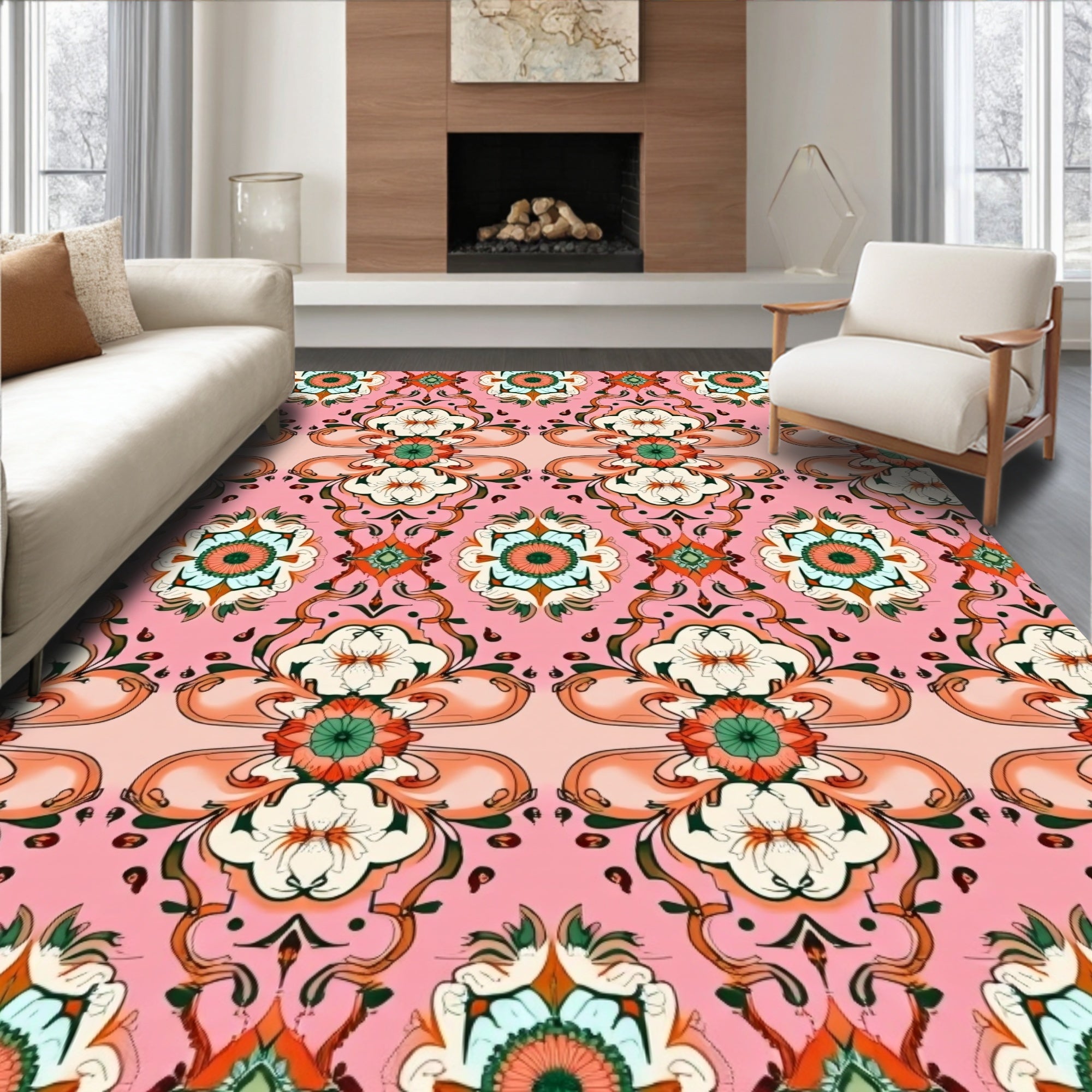 Dreamcatcher Medallion Interlocking Floral Lattice Design(Pink)