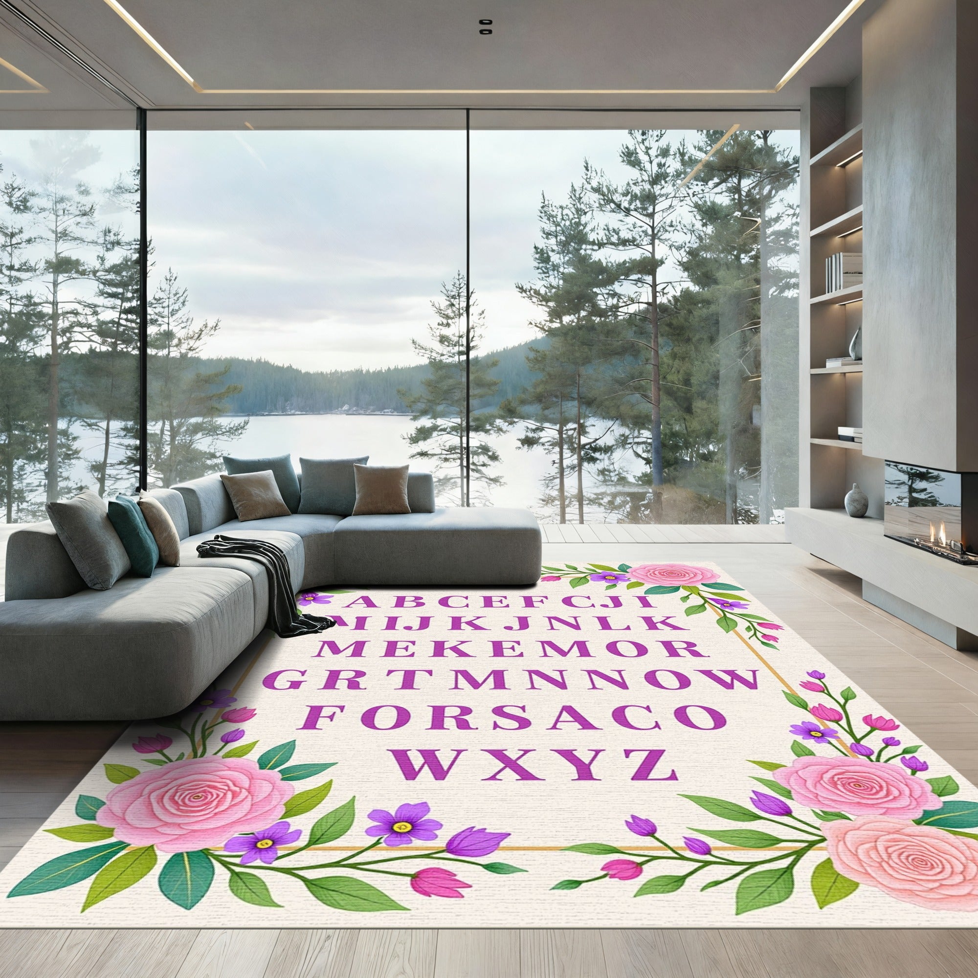 Lavender Floral And Leaf Letters Rug