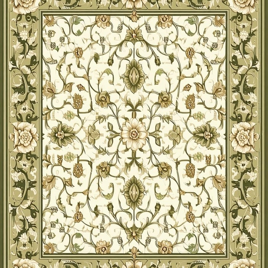 Sophisticated Olive Area with Detailed Scrollwork and Floral Motifs(Beige)