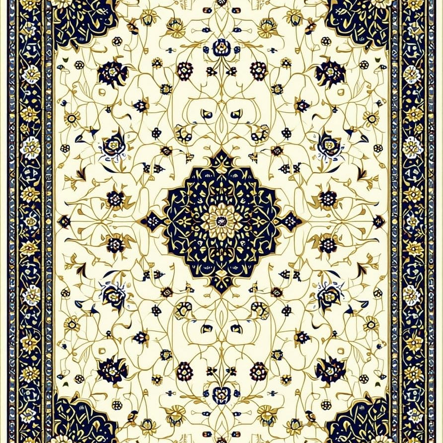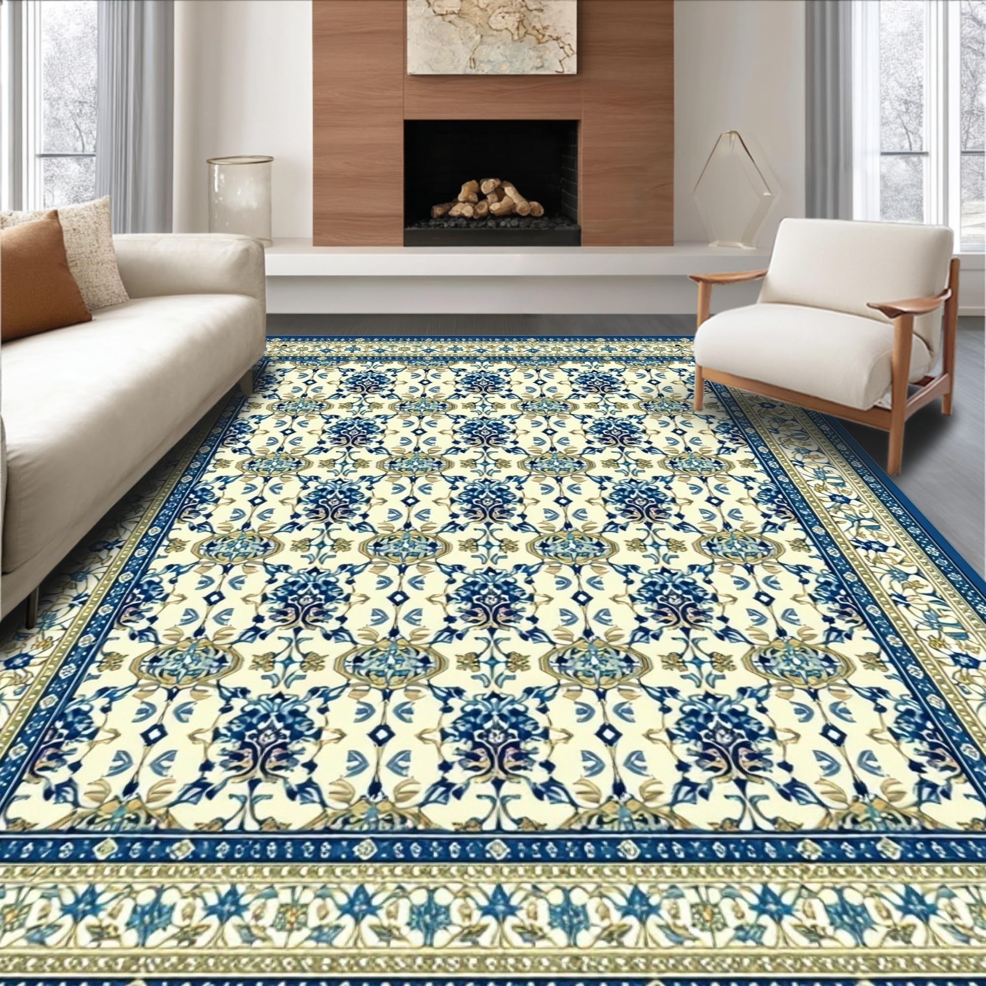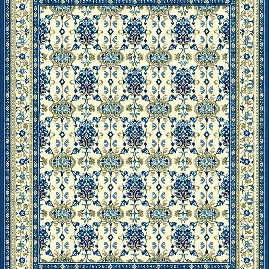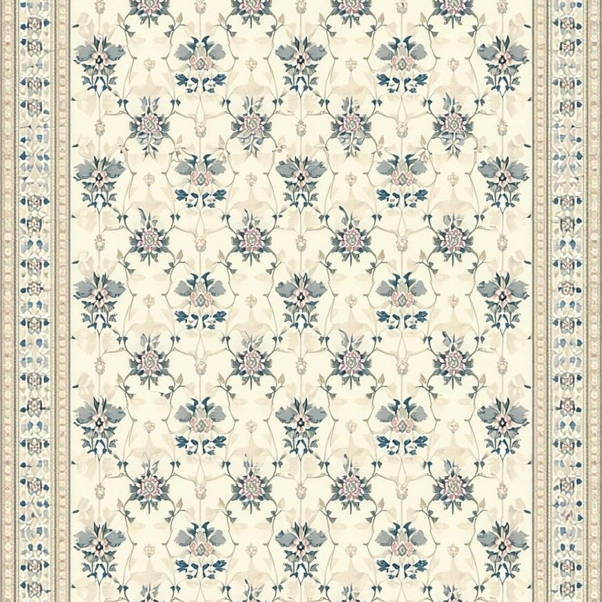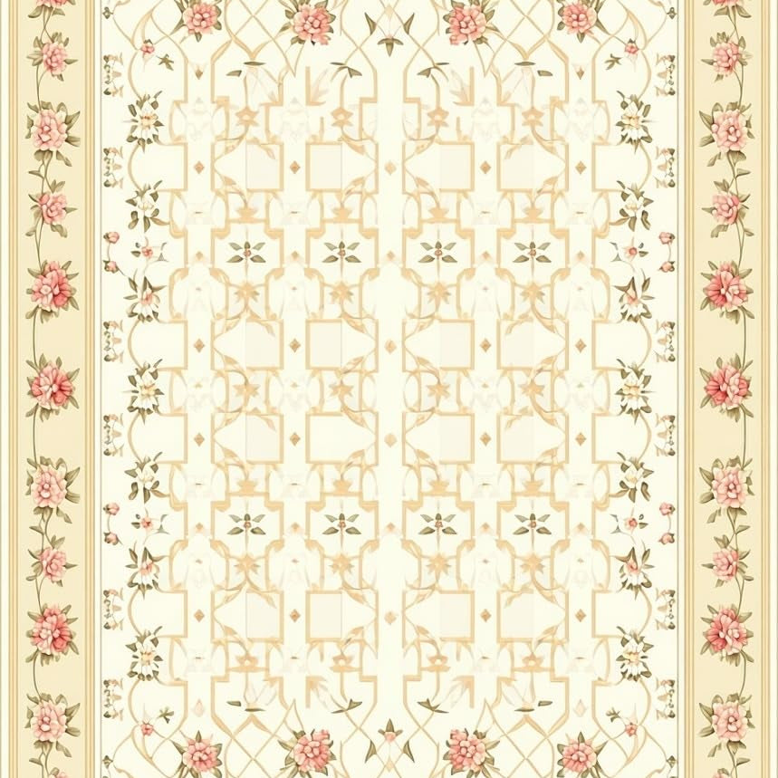 Intricate Floral Trellis Area with Elegant Beige and Sea Blue Design(Ivory)