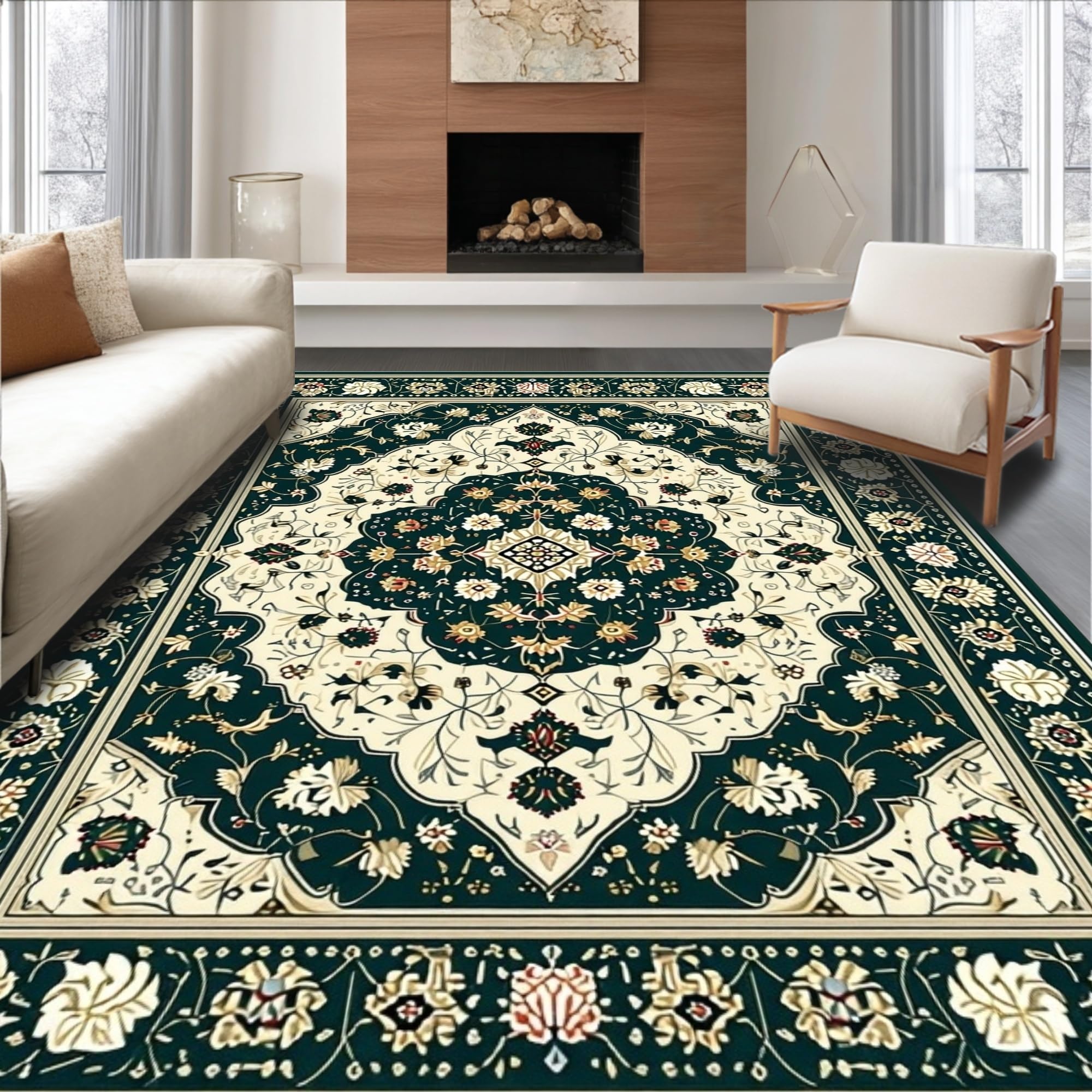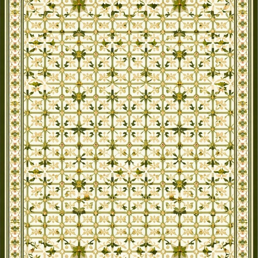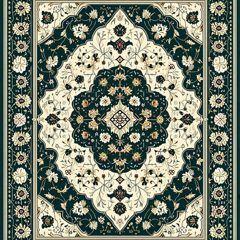 Heritage Medallion with Symmetrical Floral Motifs and Geometric Edges(Dark Green)