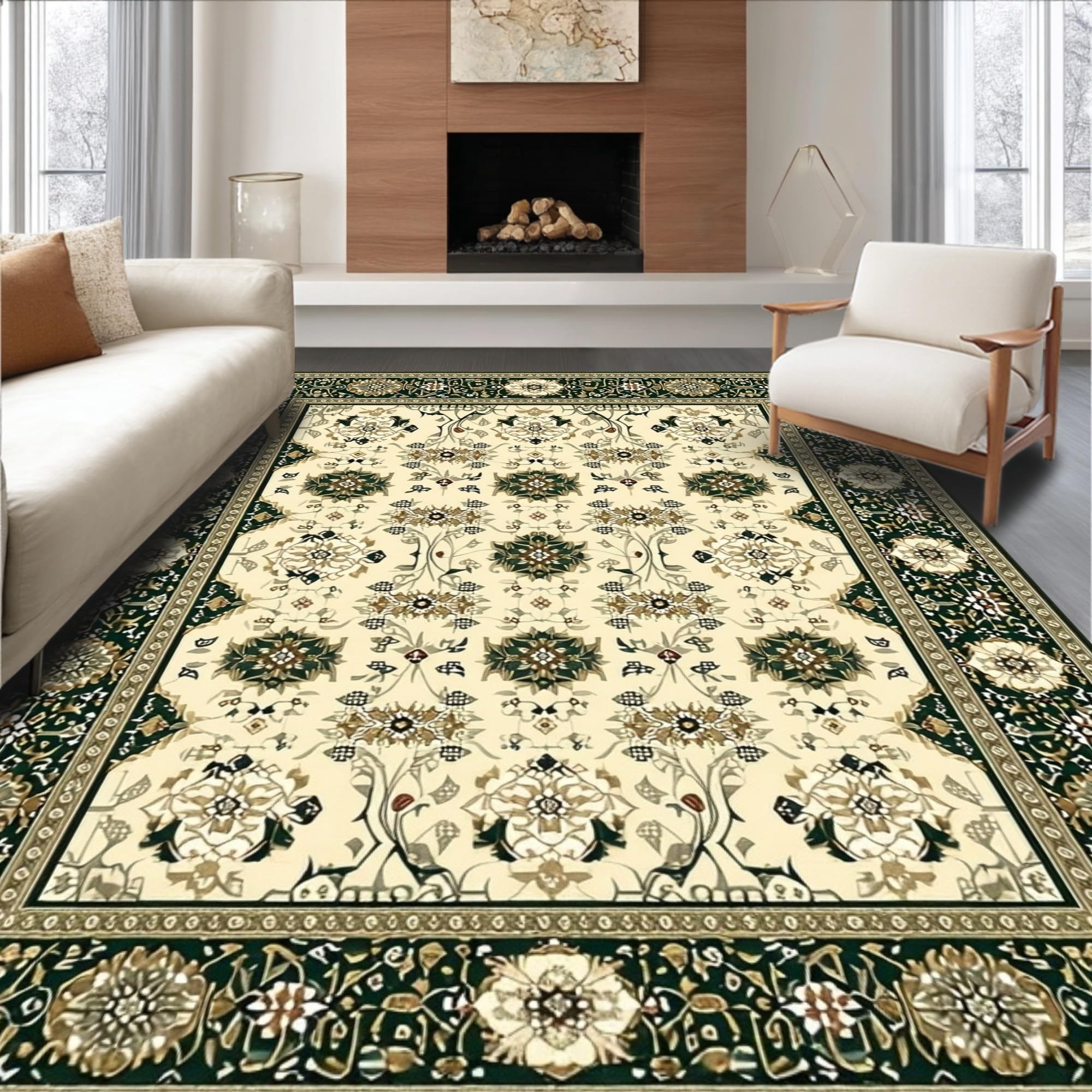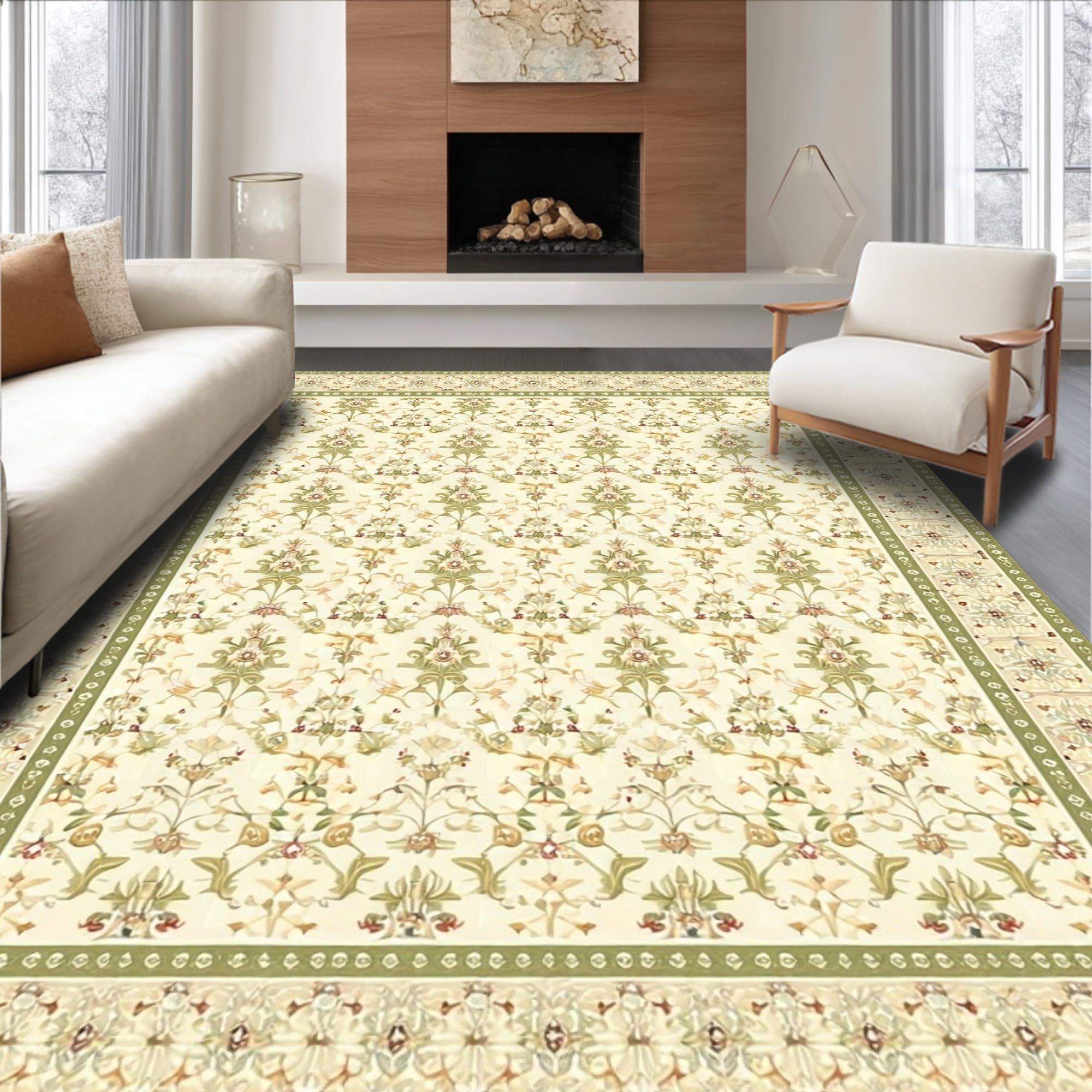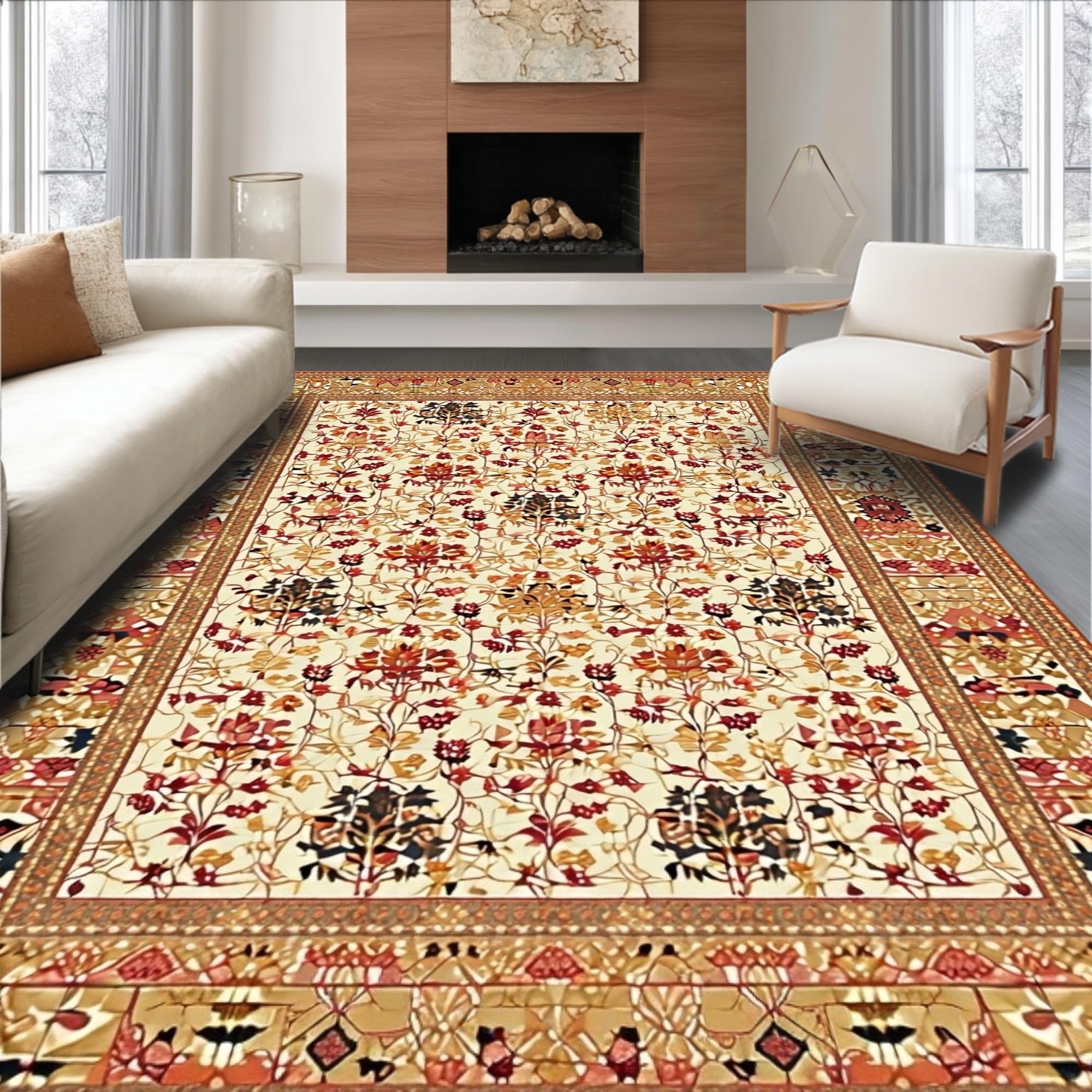 Elegant Floral Motif Area with Woven Design and Vintage Charm(Ivory)