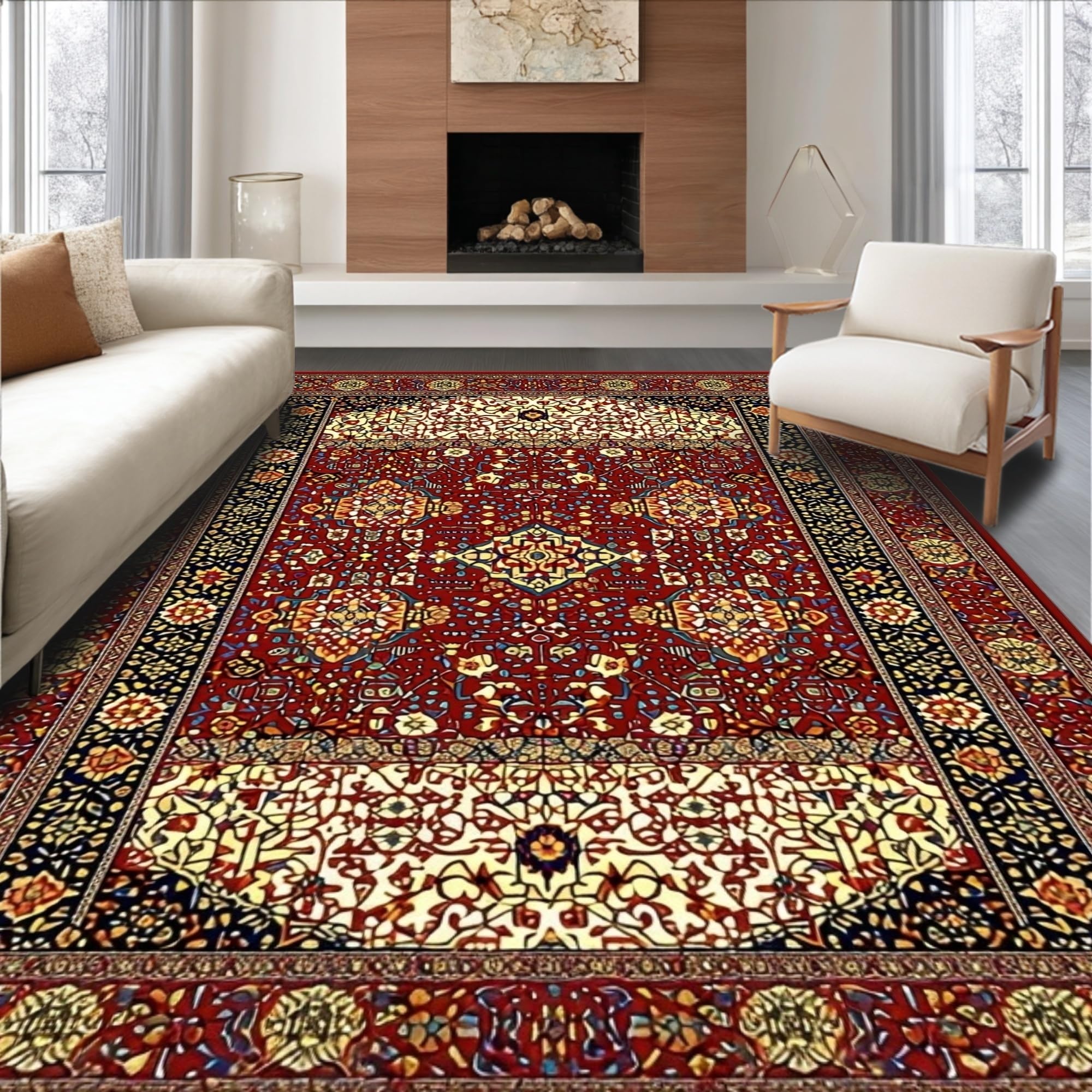 Intricate Abstract Floral Area with Geometric Patchwork Design(Red)