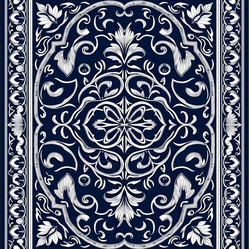 Traditional Floral Scrollwork Revival Heirloom Crafted (Blue)