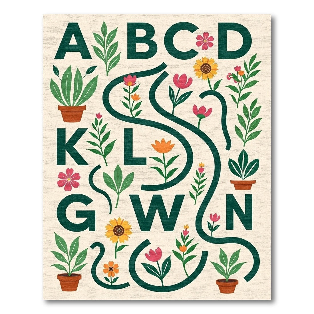 Alphabet Garden Floral Botanical Illustration Rug
