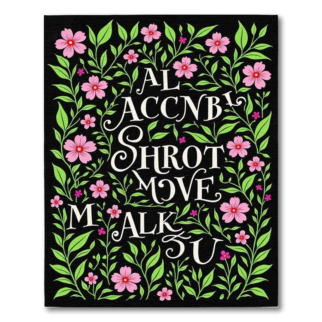 Floral Black Pink Green Botanical Layout Rug