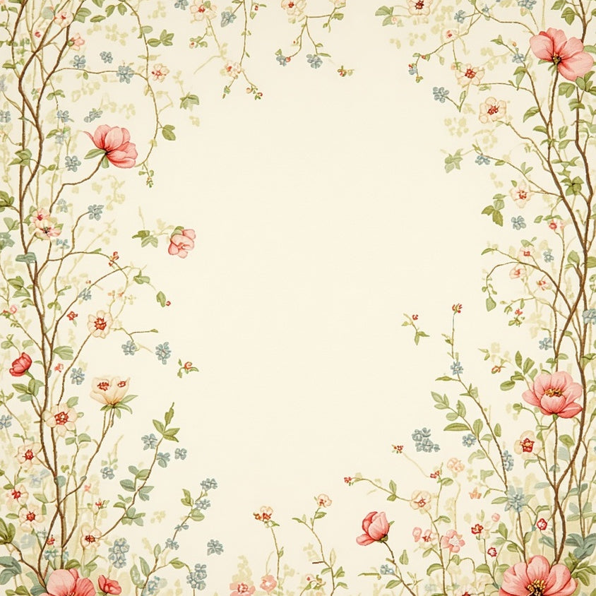 Cottagecore Garden Area with Lush Foliage and Whimsical Wildflower Motifs(Beige)