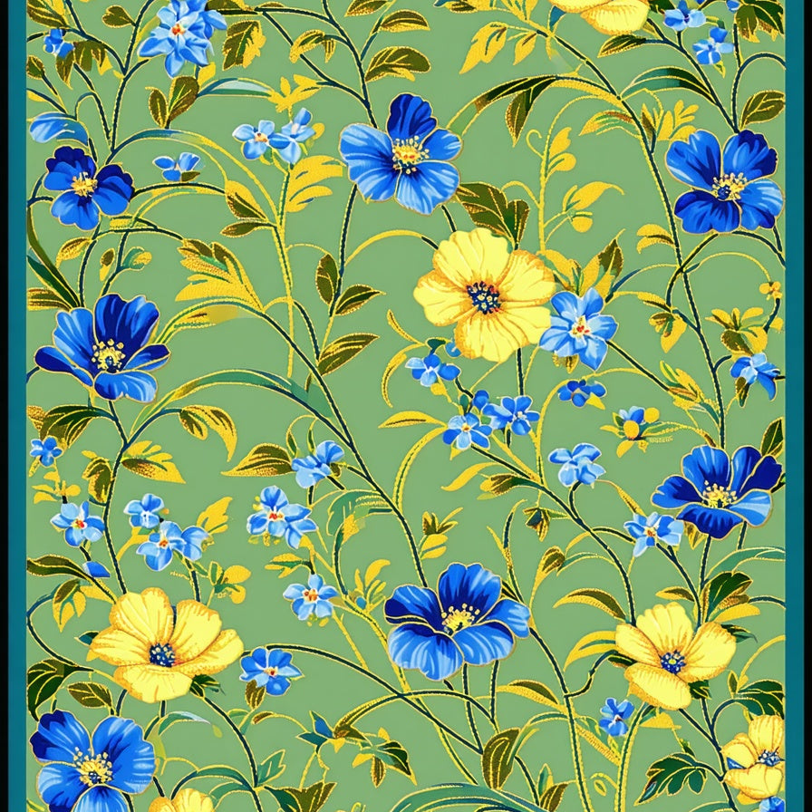 Bathroom with Yellow Flowers and Green Edges(Green)