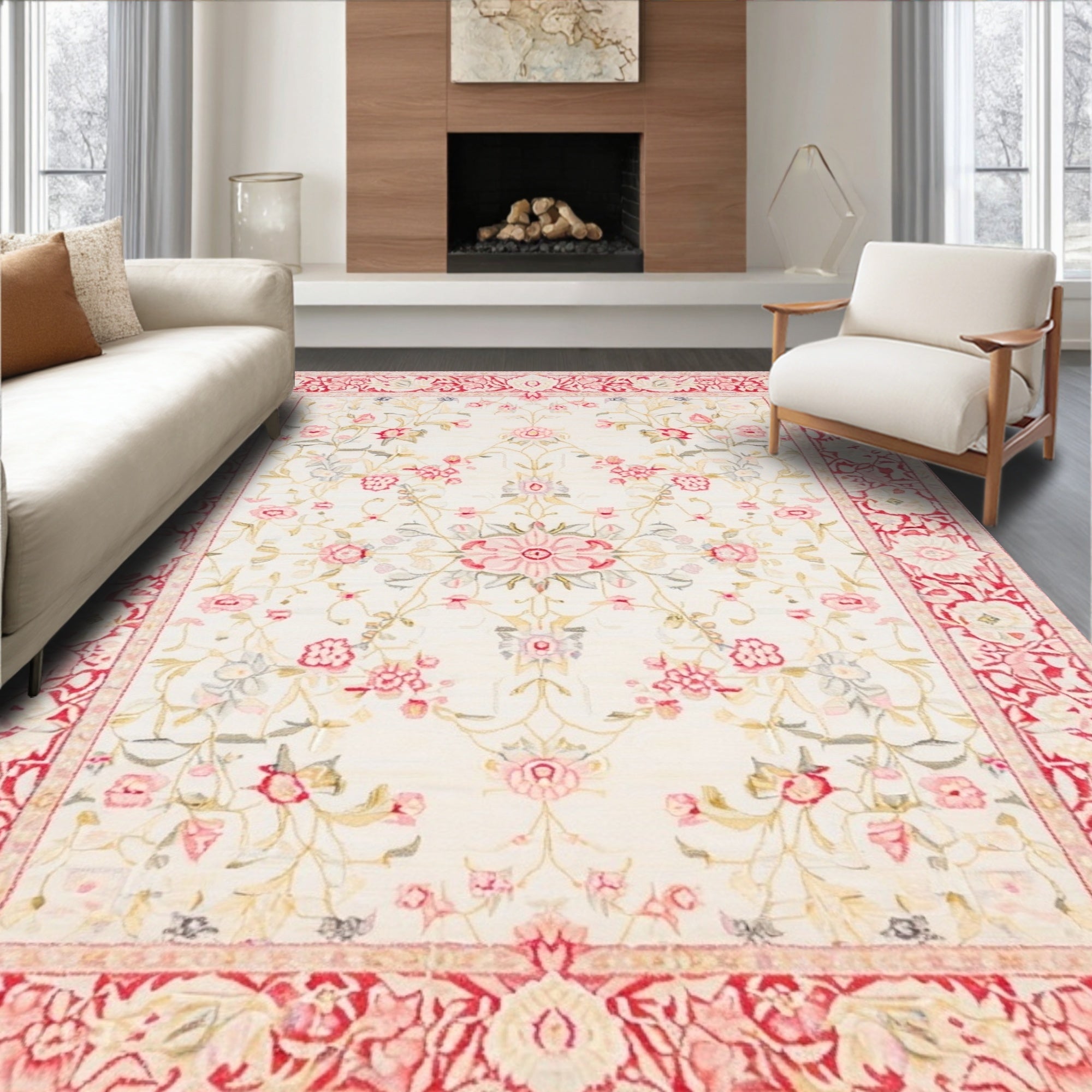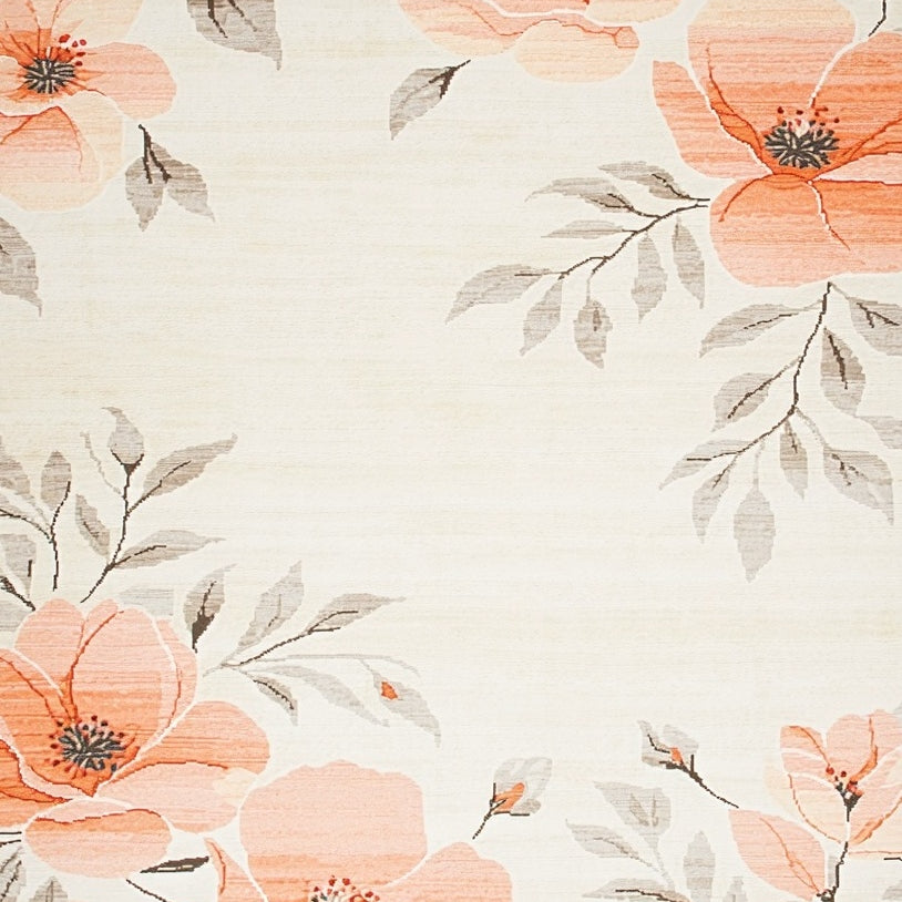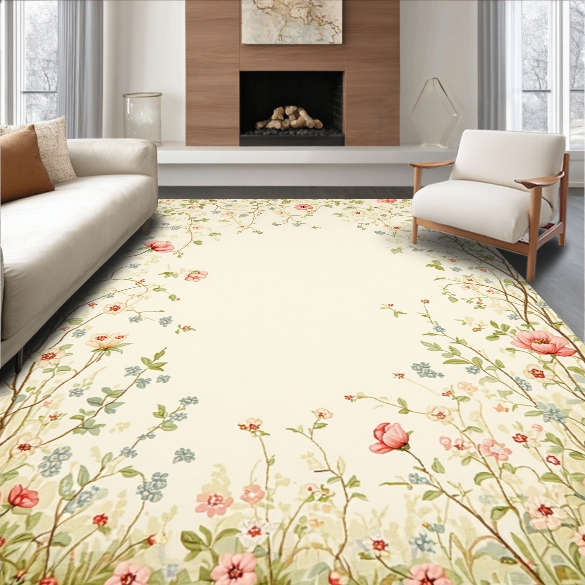 Chic Washable Area Rug Featuring Delicate Flower Design(Beige)