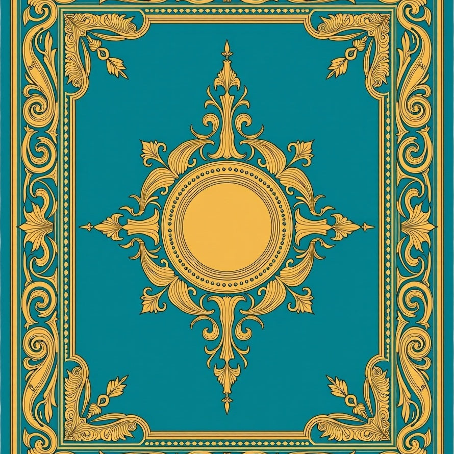 Lotus Medallion with Flourished Petal Motifs and Wavy Borders (Gold)