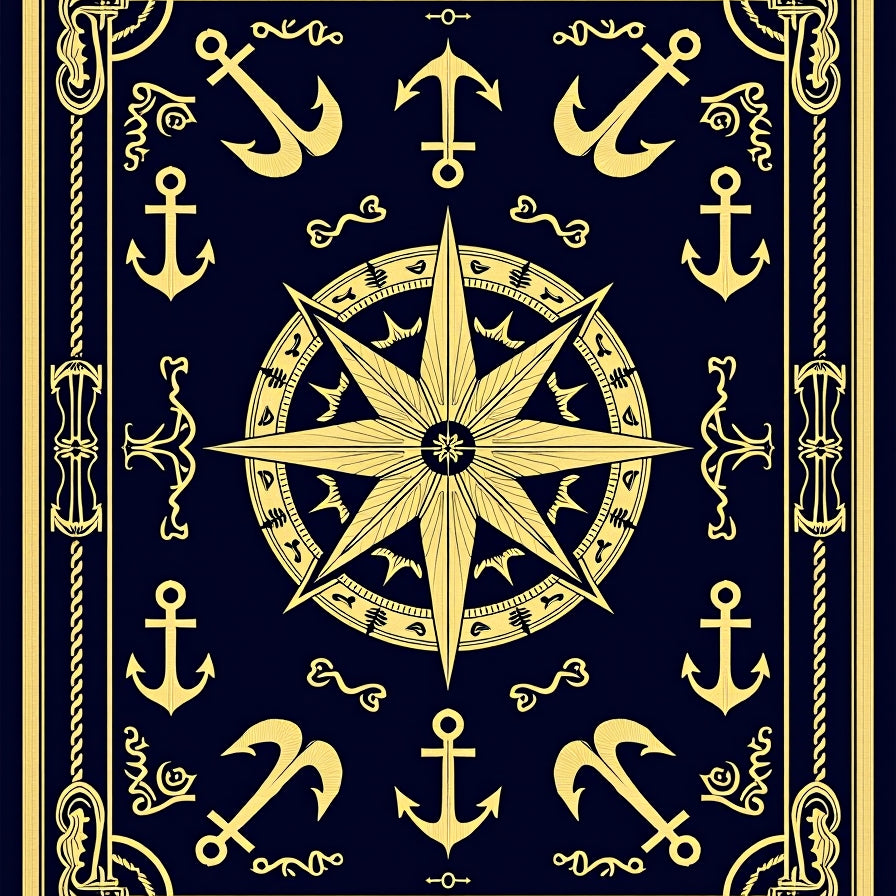 Captain Anchor Maritime Heritage Compass Rose Navigation Design (Gold)