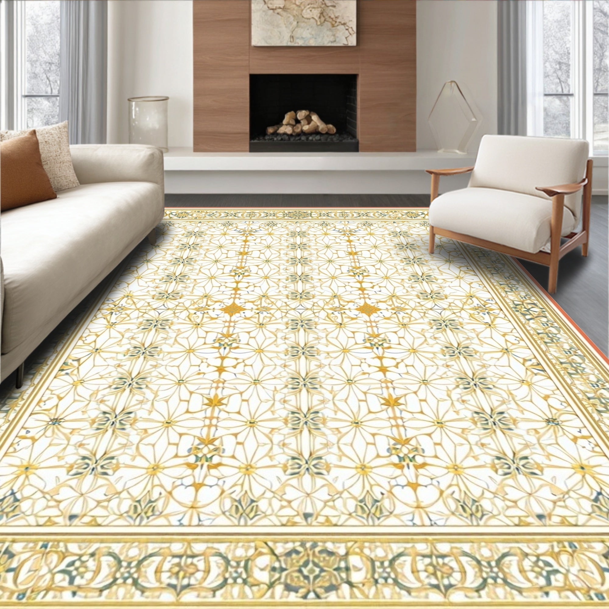 Vintage Style With Subtle Multi Color Lattice and Scrollwork Details(Gold)