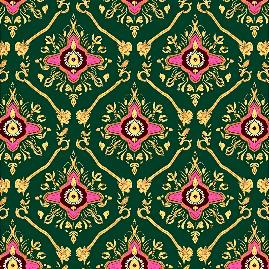 Heritage Holiday Floral Damask Pinecone Scrollwork Interlocking(Green)