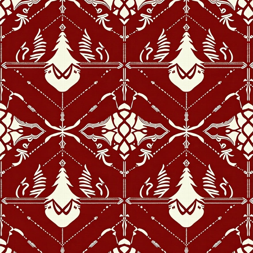 Holiday Ornament Array with Interlocking Plaid and Stylized Pine Sprigs(Red)