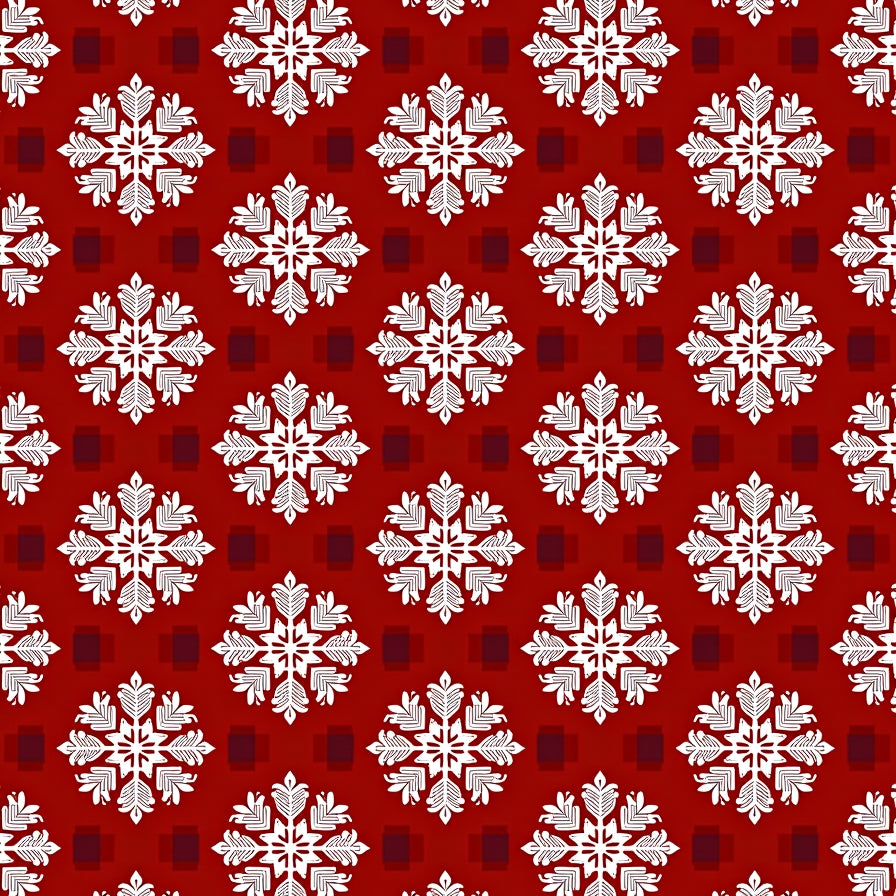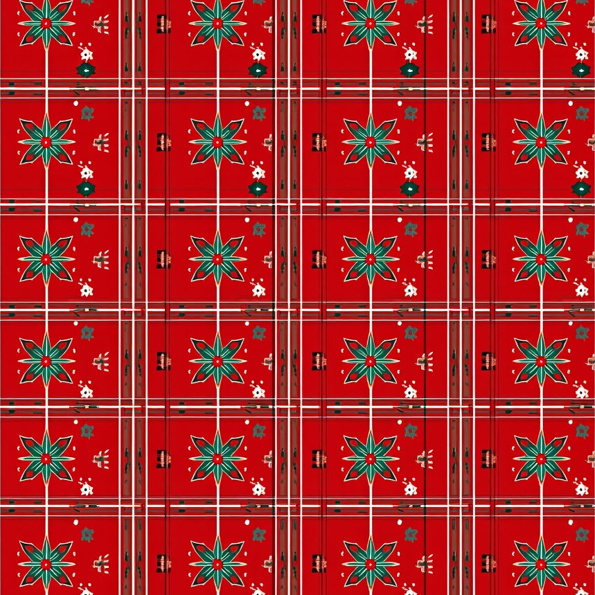 Winter Starburst Interlocking Plaid with Festive Botanical Flourish(Red)