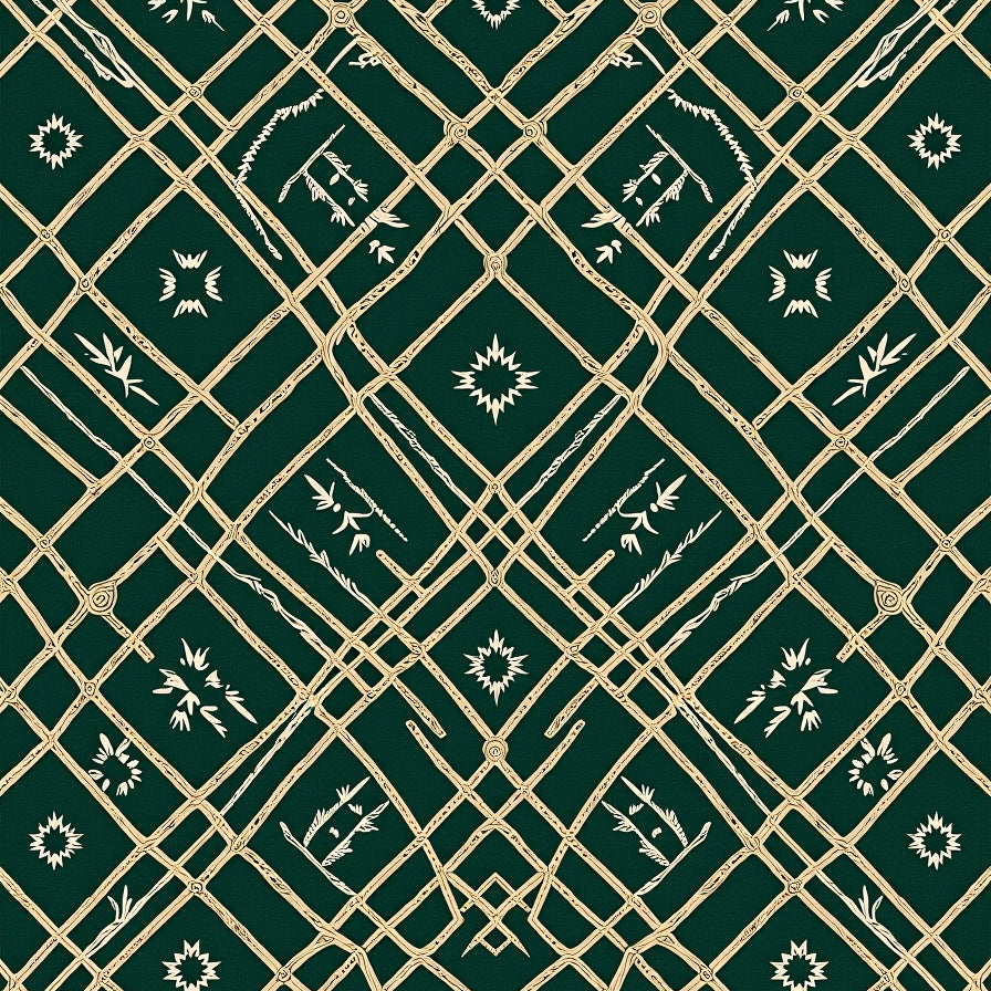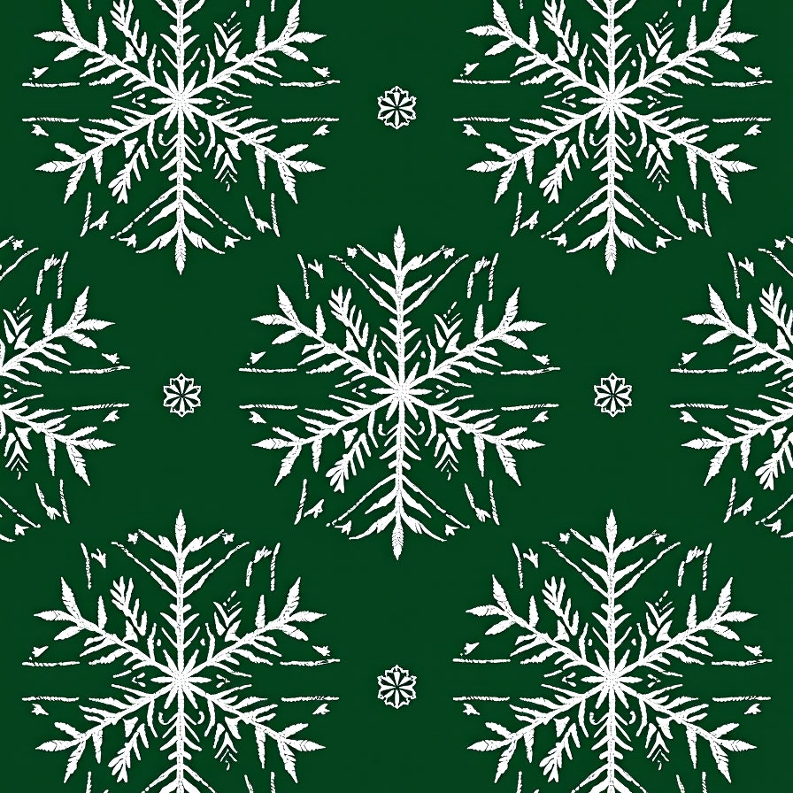 Frosted Pine Needle Interlocking Plaid with Stylized Crystal Flakes(Green)