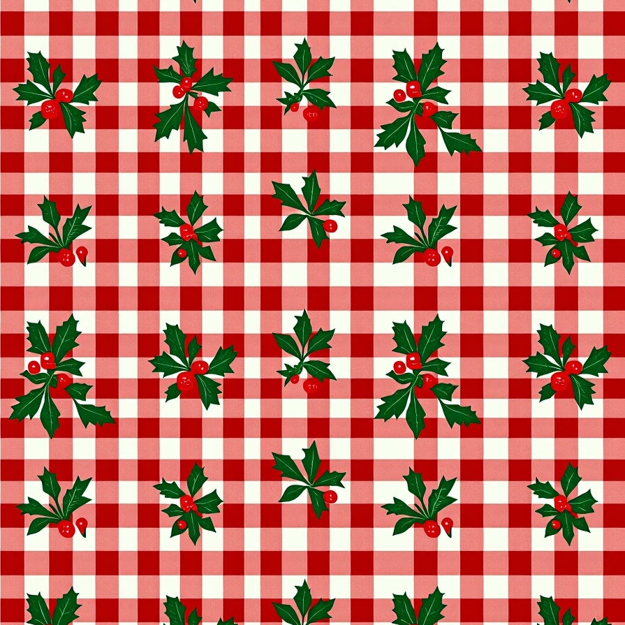 Vintage Holly Berry Checkered Gingham Holiday Non Slip(Red)