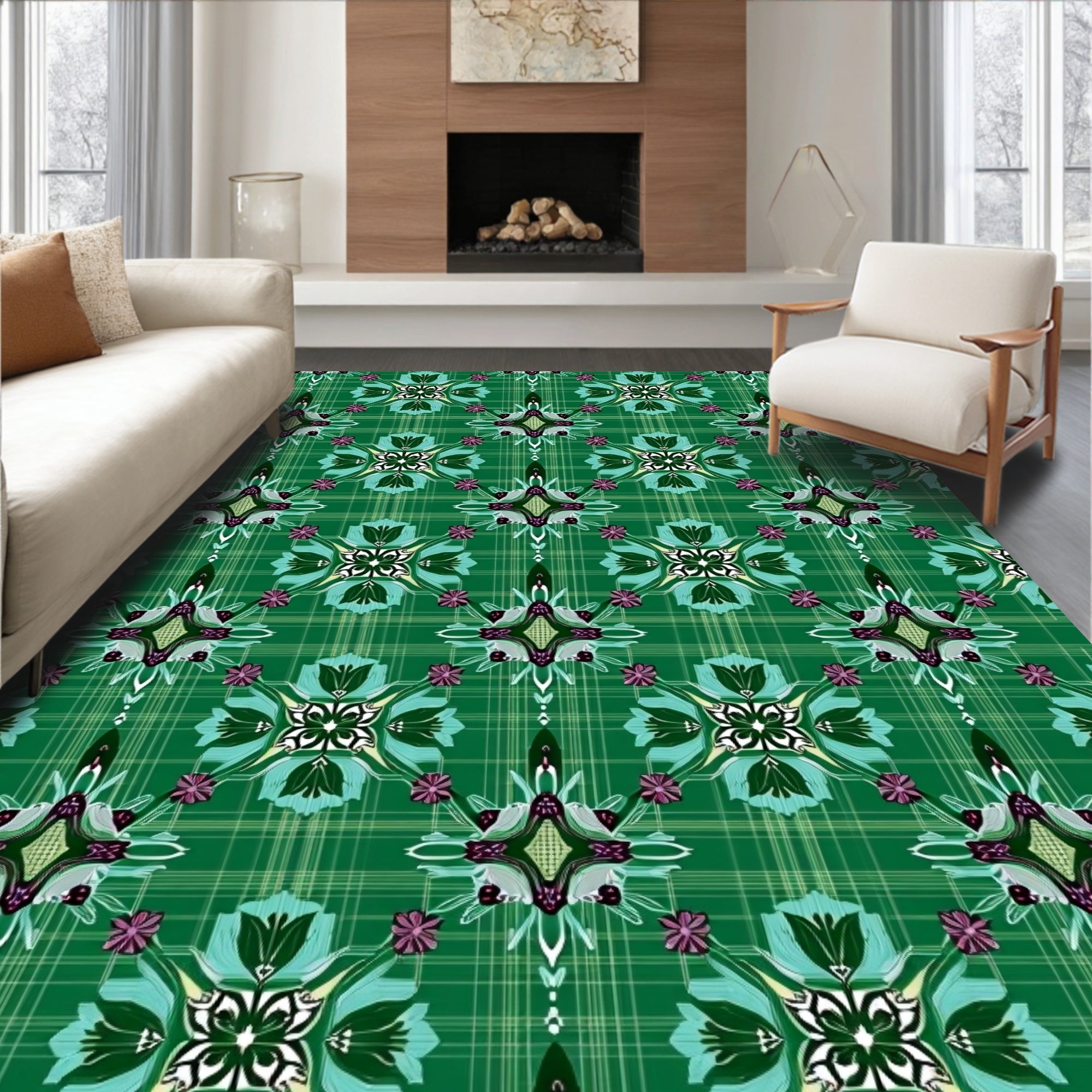 Festive Snowflake Plaid Holiday Pathway Accent(Green)