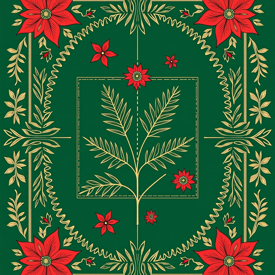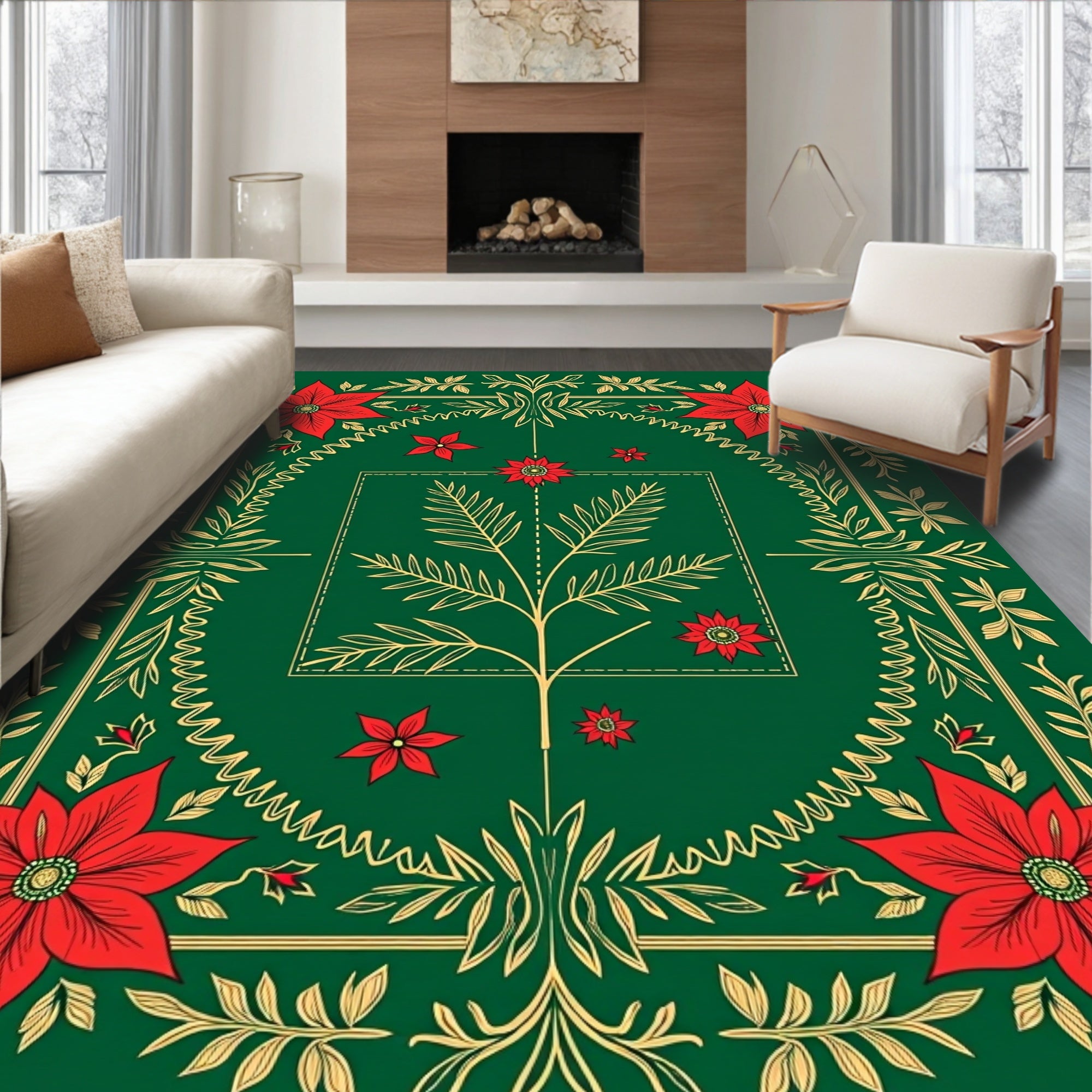 Poinsettia Blossom Design Holiday with Floral Motifs(Green)