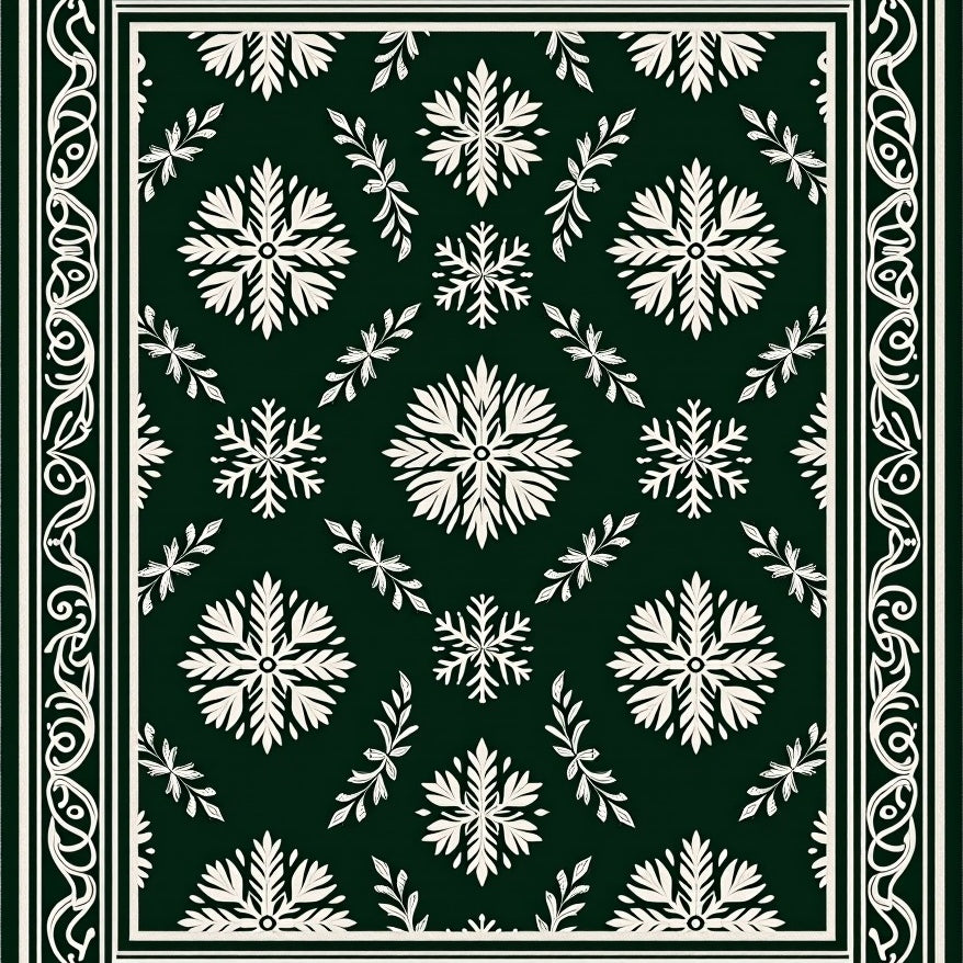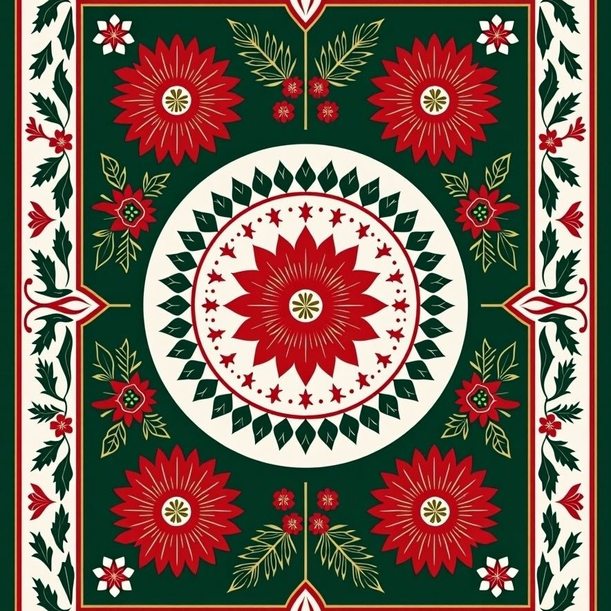 Festive Holly Wreath Area with Traditional Motifs(Black)