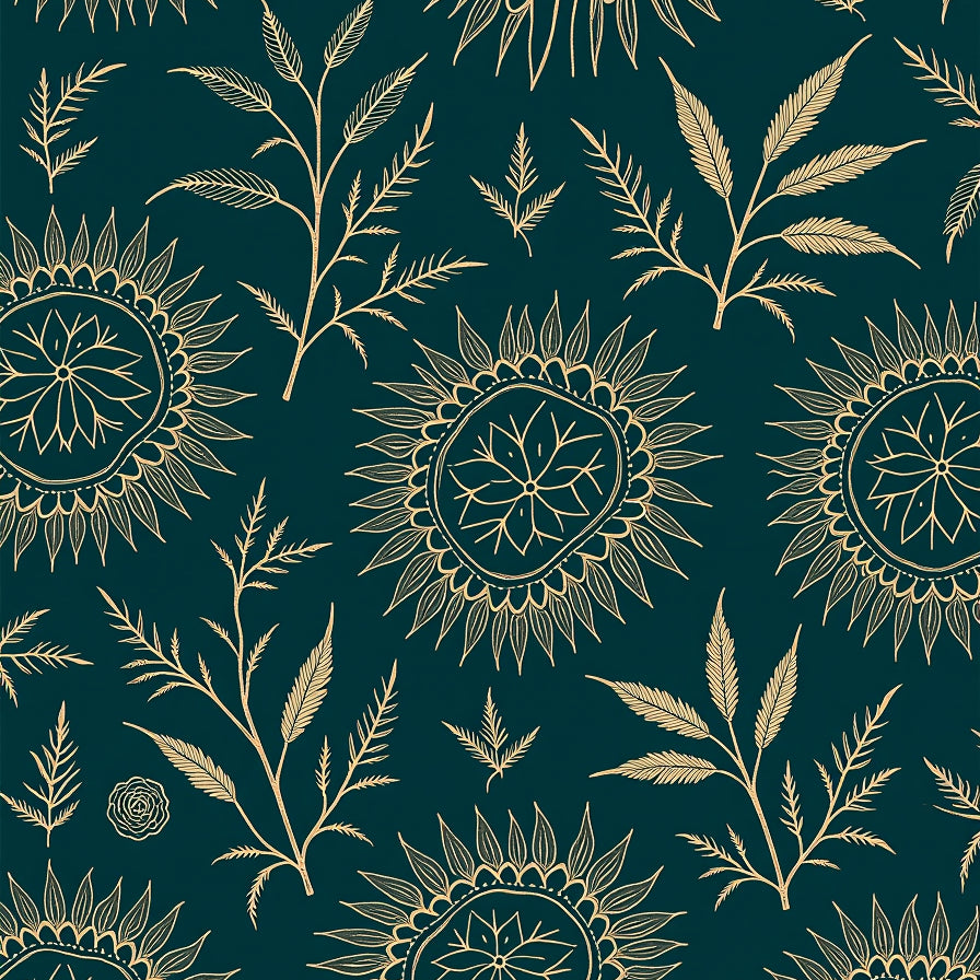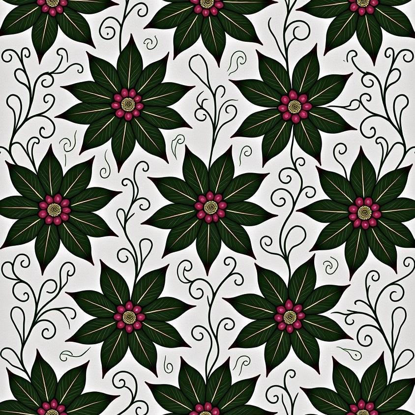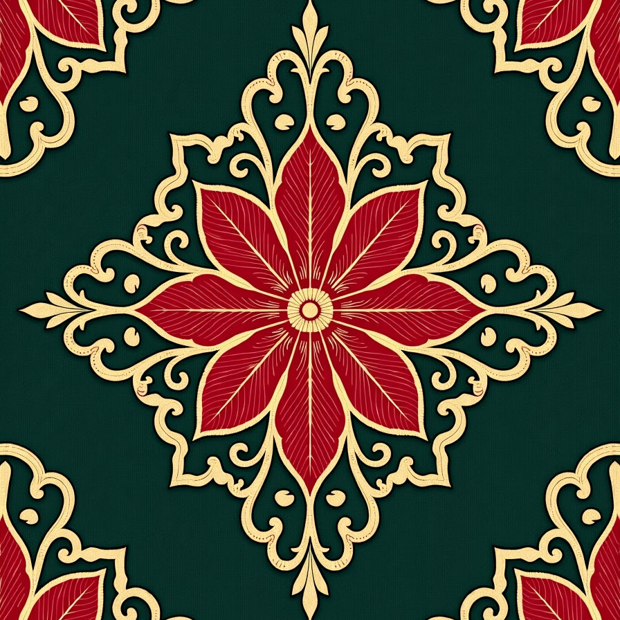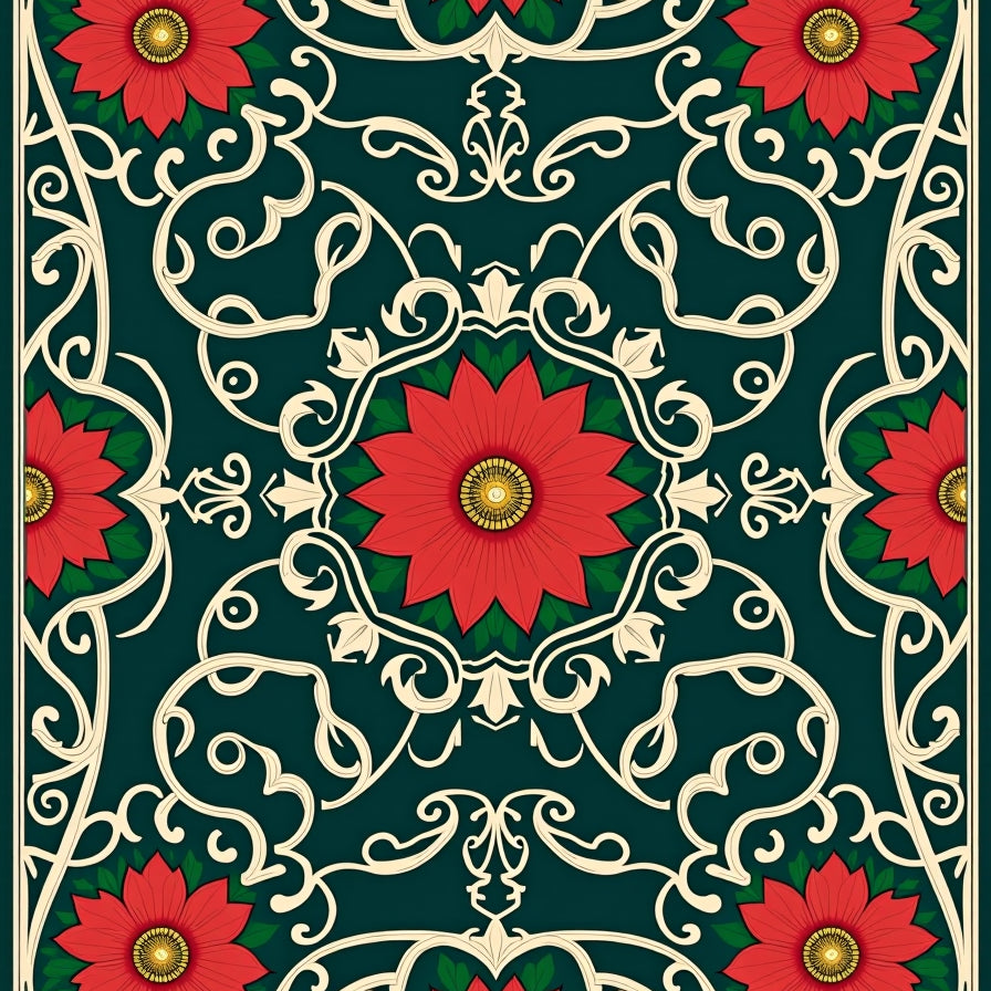 Poinsettia Medallion with Ornate Victorian Flourishes(Green)