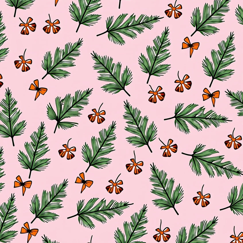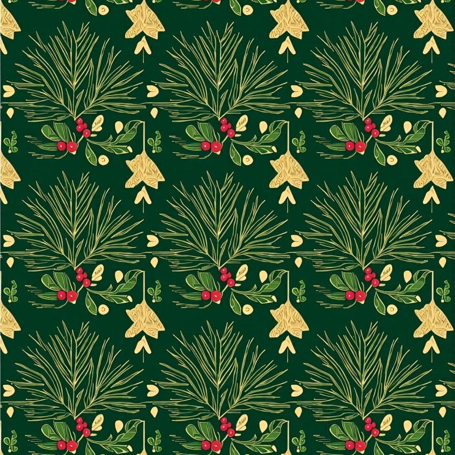 Whimsical Evergreen Interlocking Pine Needle and Holly Design(Green)