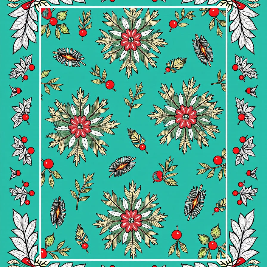 Jolly Poinsettia Scrollwork Baroque Floral with Berry Embellishments(Green)
