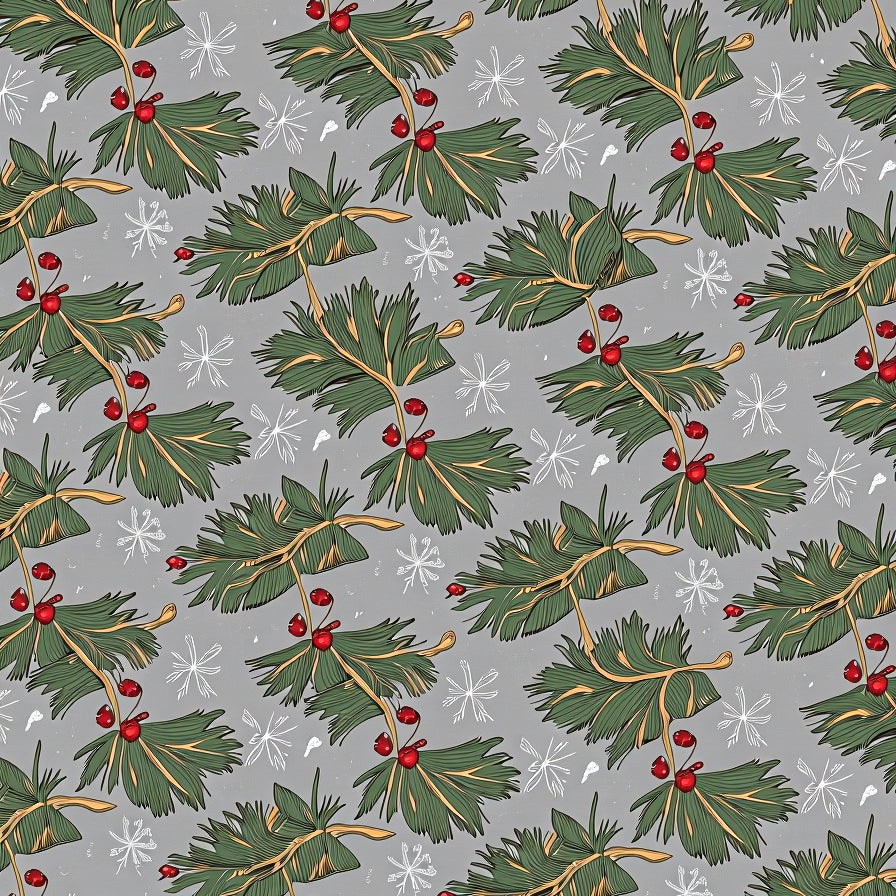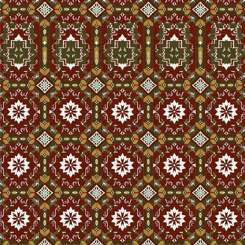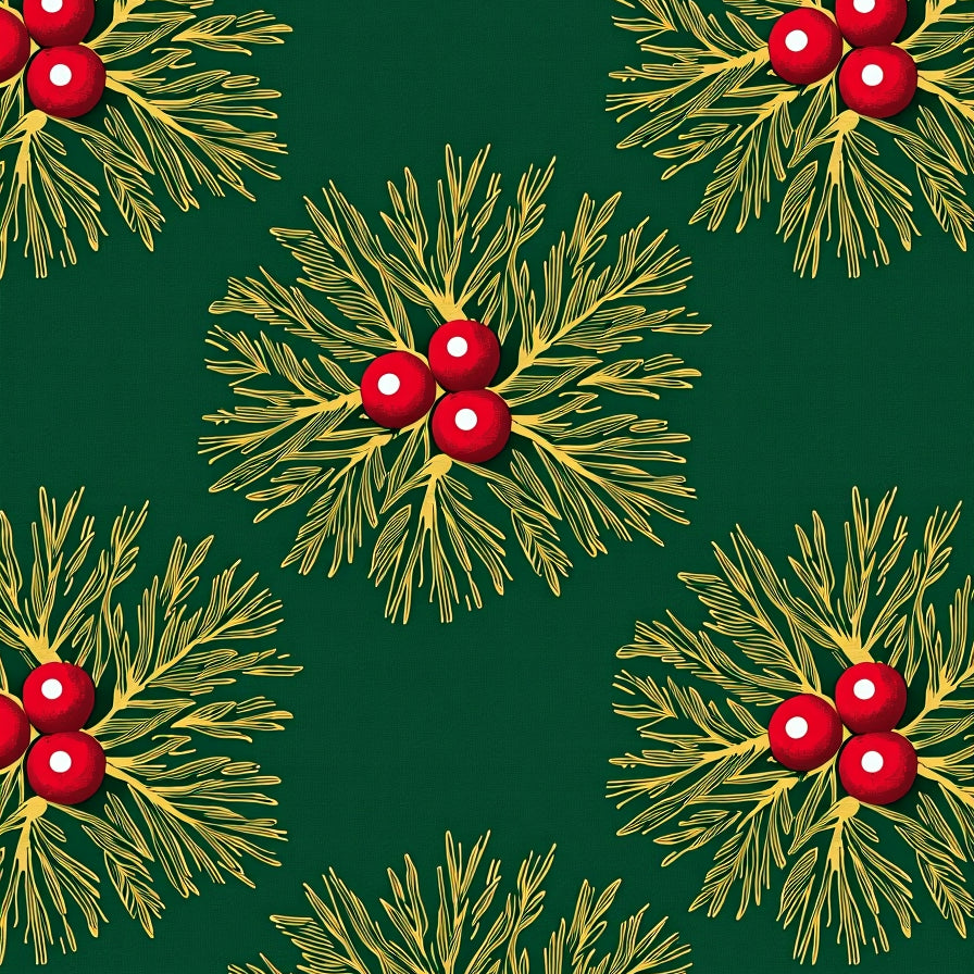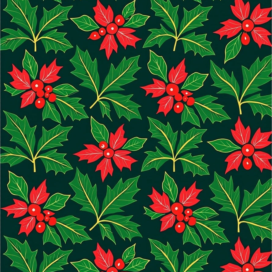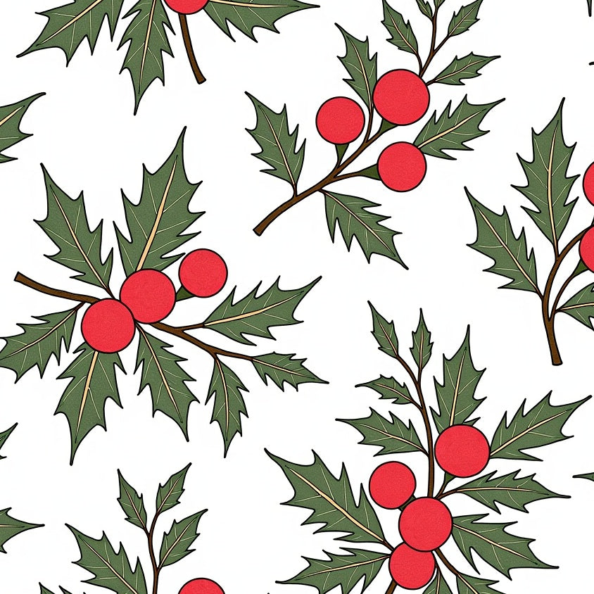 Festive Holly Berry Scrollwork with Vintage Lattice Motifs(Red)