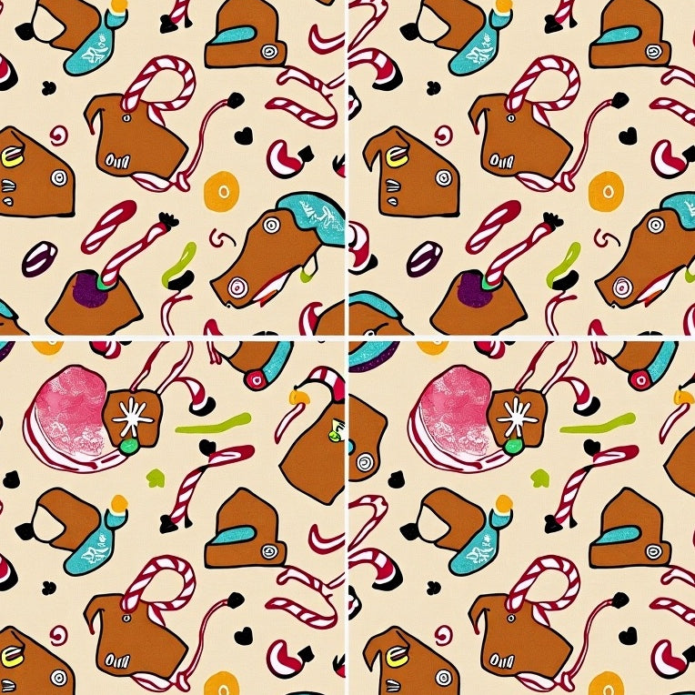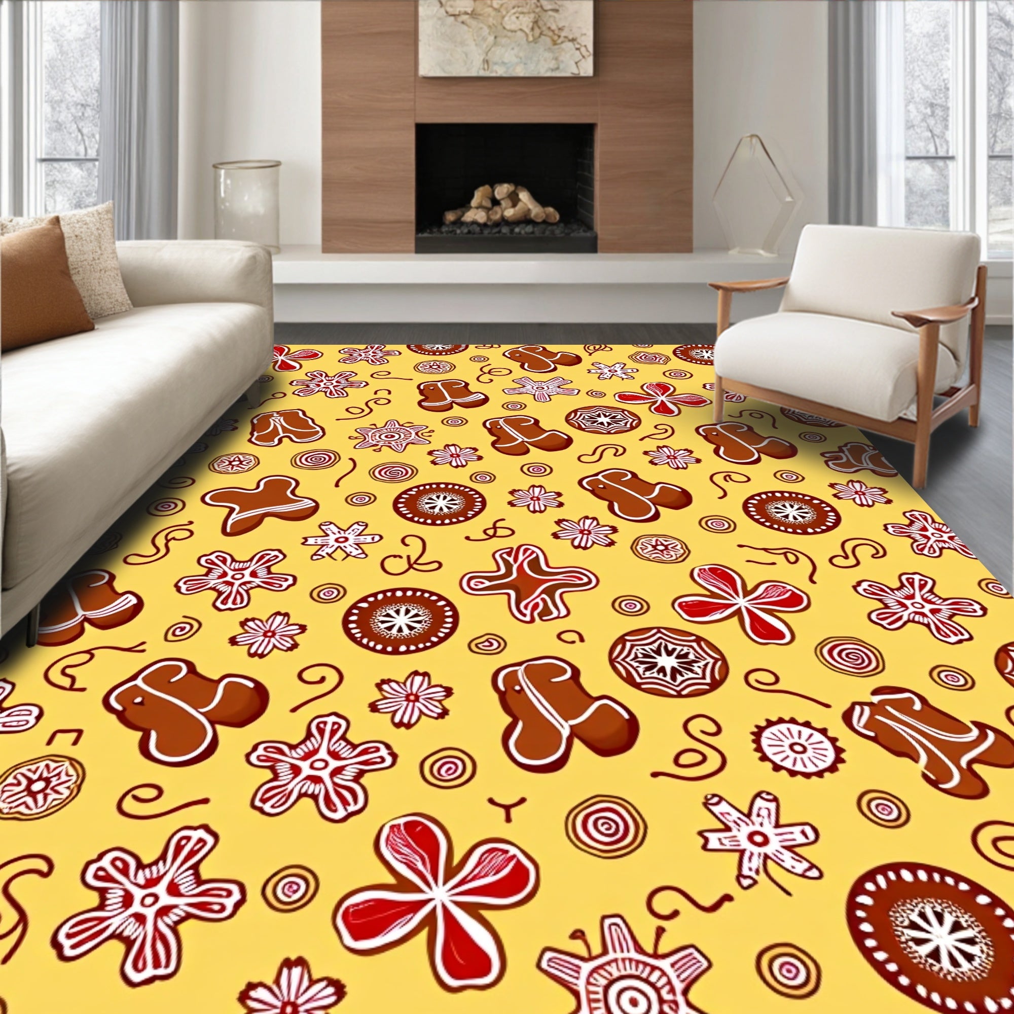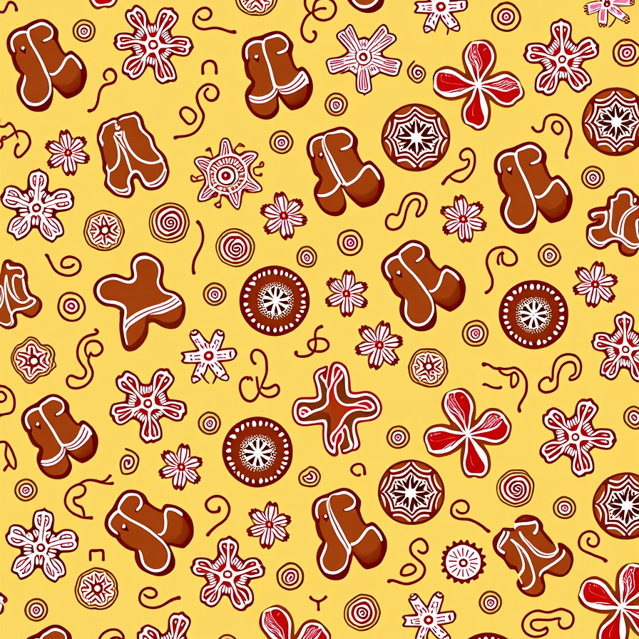 Gingerbread Cookie Motif with Cane Accents and Snowflake(Yellow)