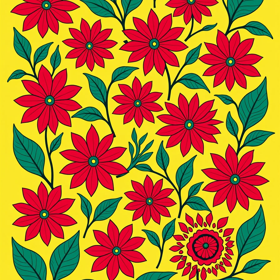 Poinsettia Floral Motif Seasonal Celebration Boho Style Decorative Art(Yellow)