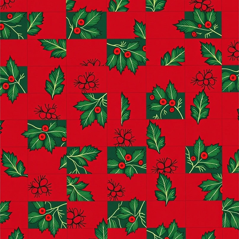 Rustic Holiday Patchwork Featuring Holly Sprigs and Berry Clusters(Red)