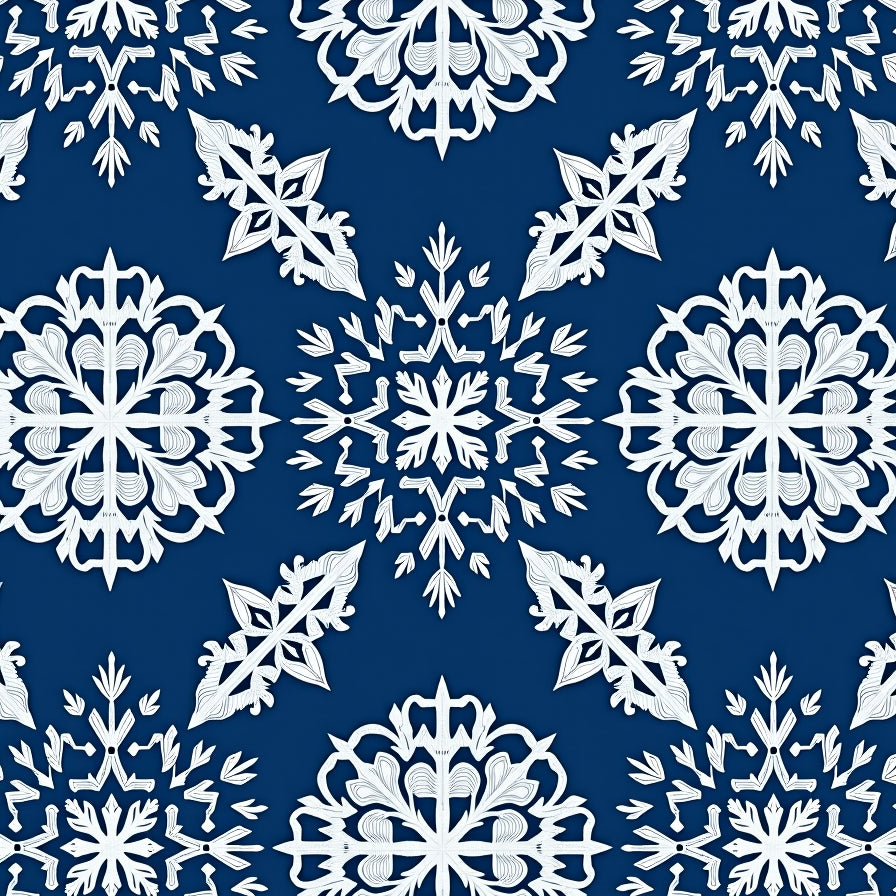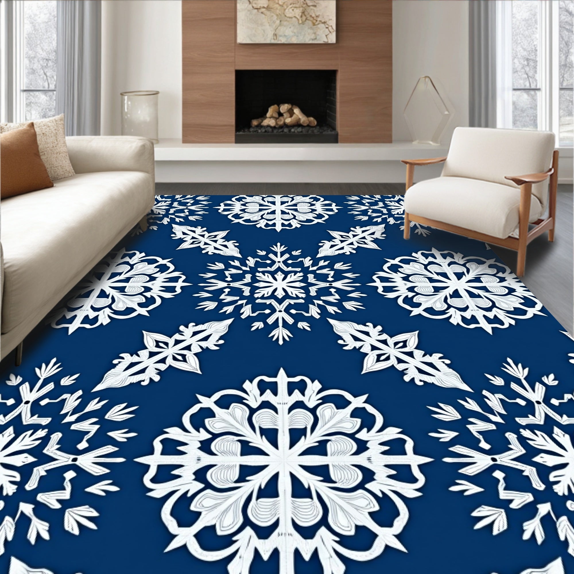 Snowflake Medallion Winter Celebration Low Pile Ornamental Design(Blue)