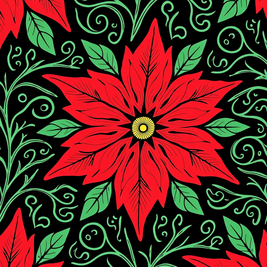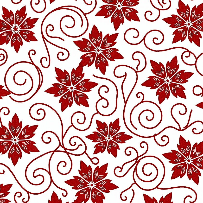 Elegant Poinsettia Blossom Medallion with Twisting Vine Details(Red)