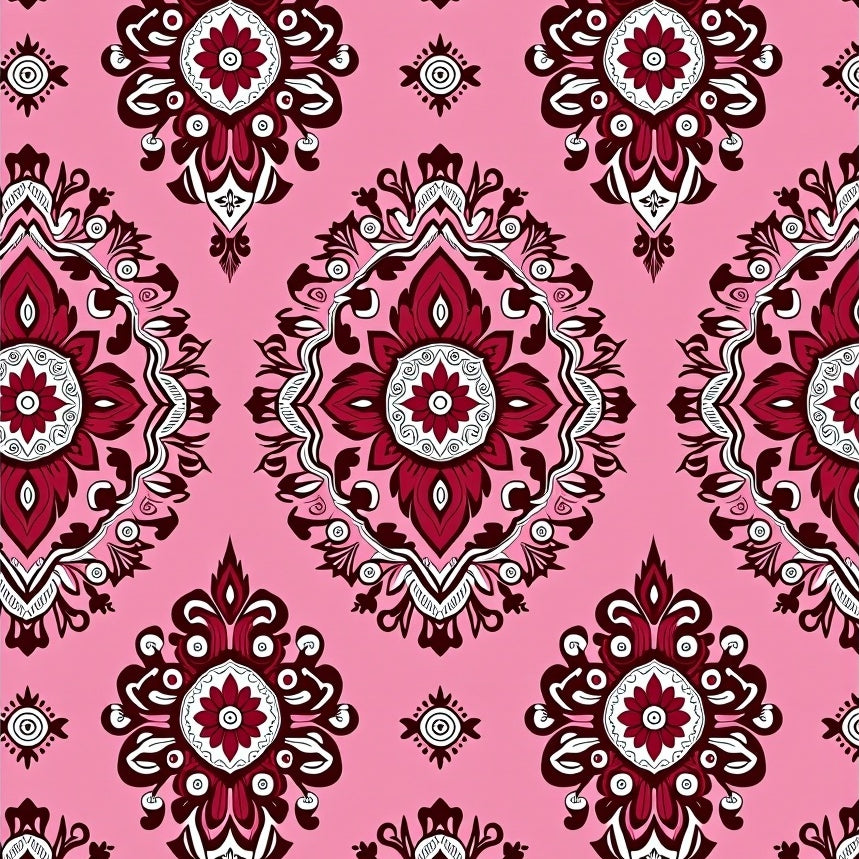 Vintage Starburst Damask with Ornate Berry Cluster Details(Pink)