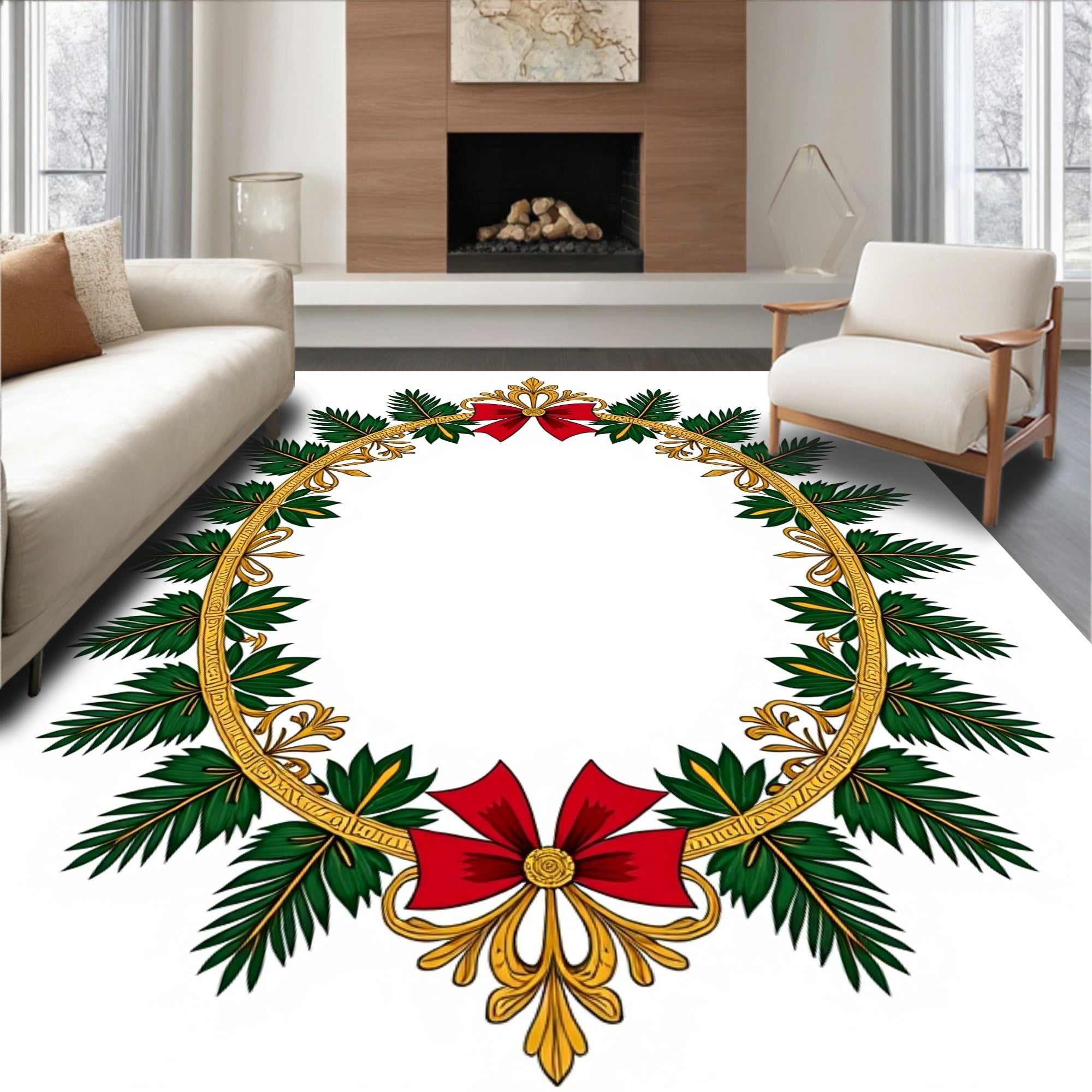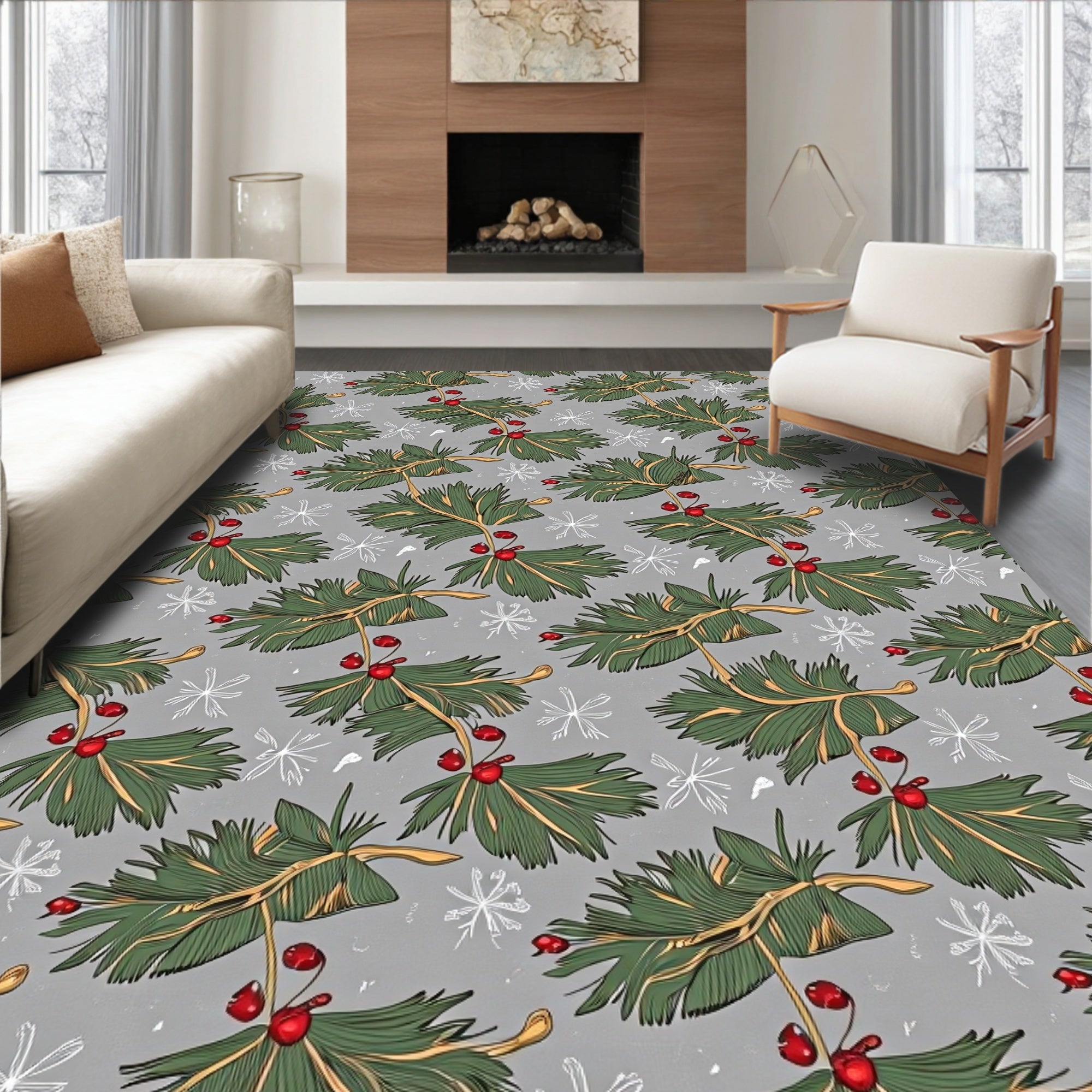 Pine Branch Cone Yuletide Theme Slip Free Floor Cover(Green)