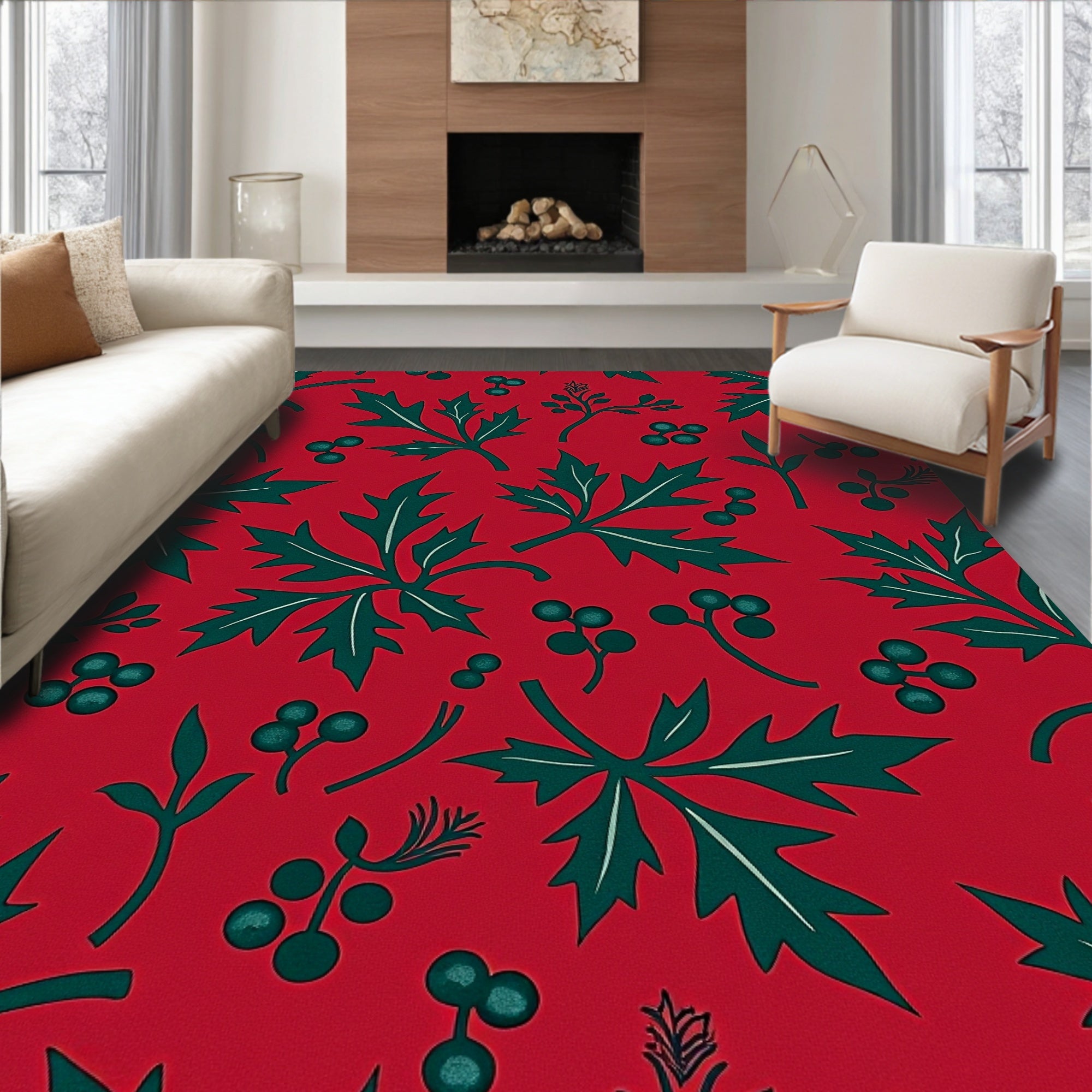 Festive Holly Berries Distressed Vintage Non Slip(Red)