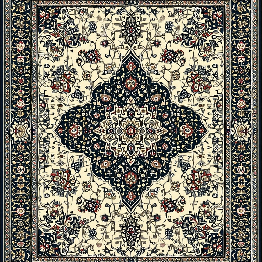 Elegant Medallion Oriental Area with Intricate Black and Beige Motifs(Black)