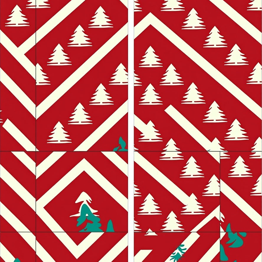 Modern Interlocking Chevron with Subtle Holiday Pine Silhouettes(Red)
