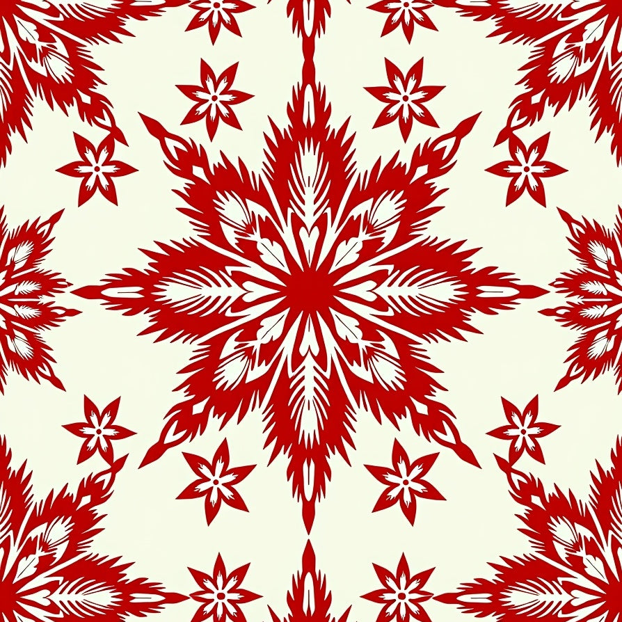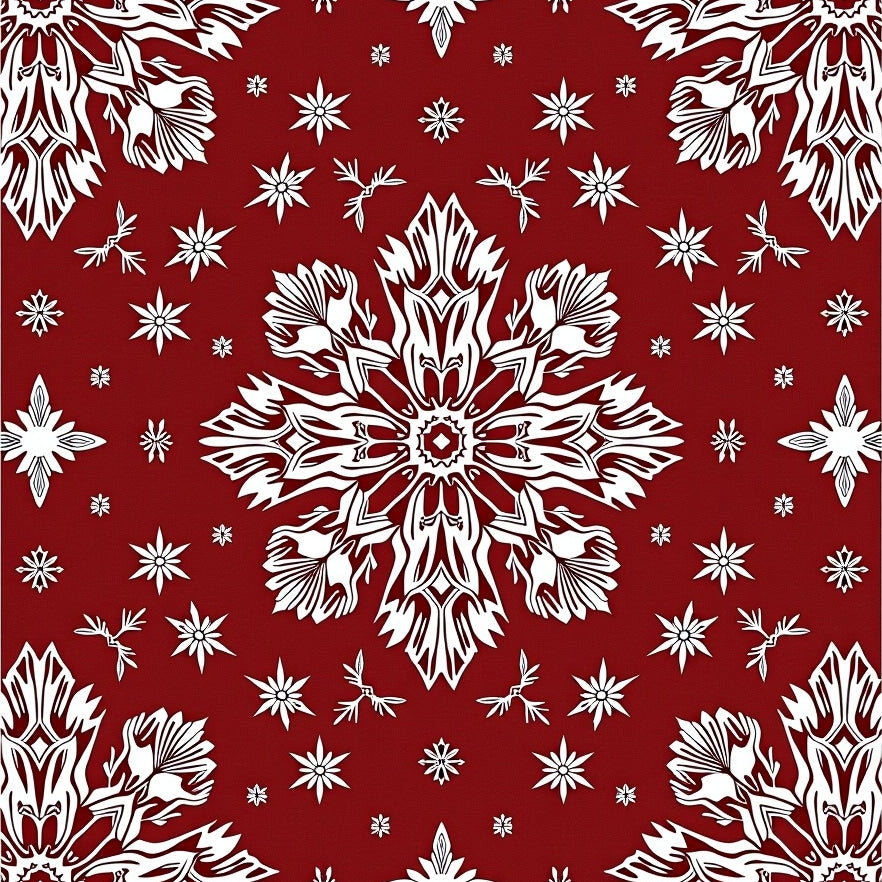 Holiday Snowflake Medallion with Festive Swirl Motifs(Red)