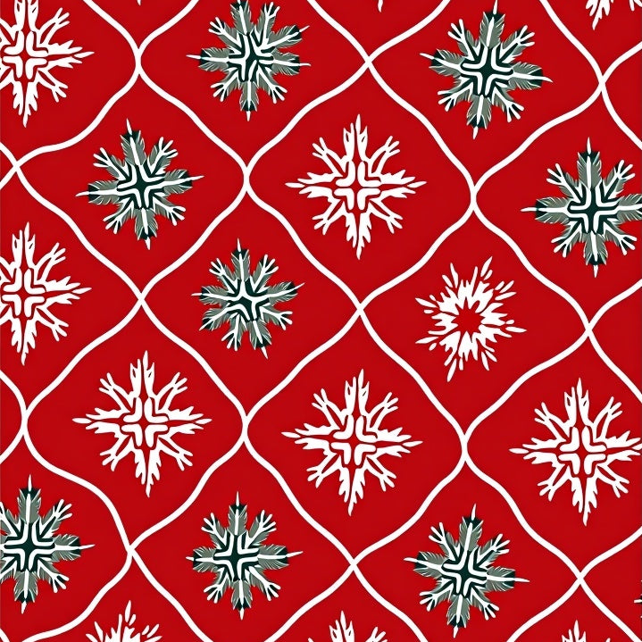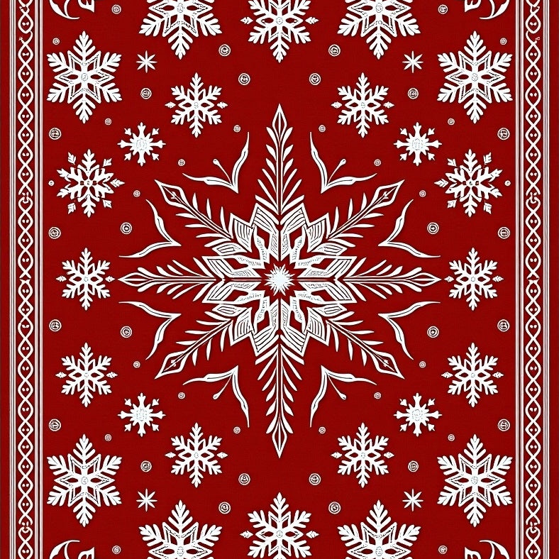 Nordic Snowflake Medallion with Festive Starburst Motifs(Red)
