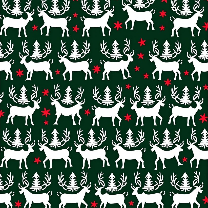 Reindeer Forest Scene Woodland Christmas Theme(Green)