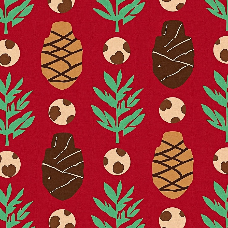 Pine Cone Forest Motif Slip Resistant Seasonal Celebration(Red)